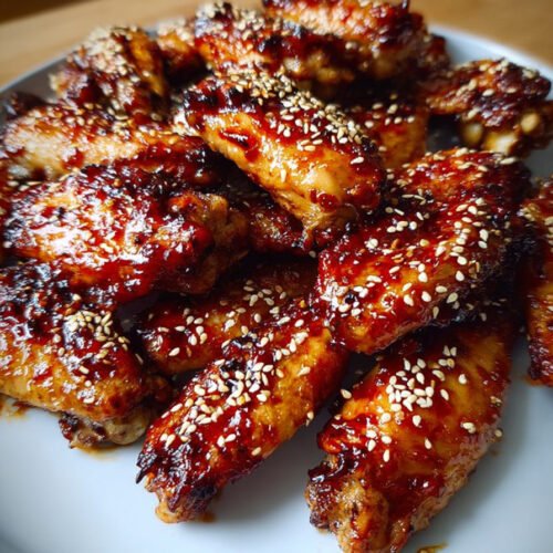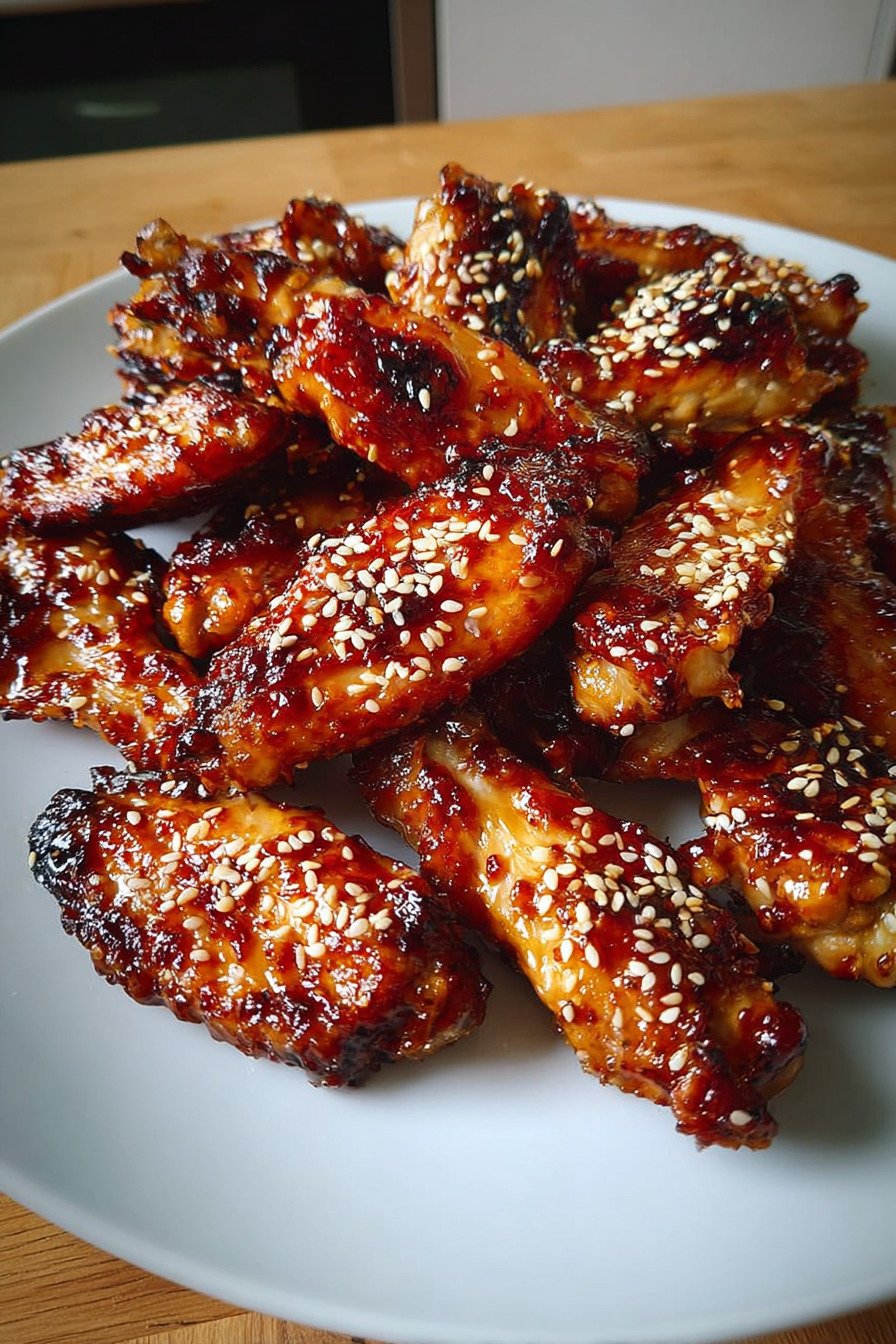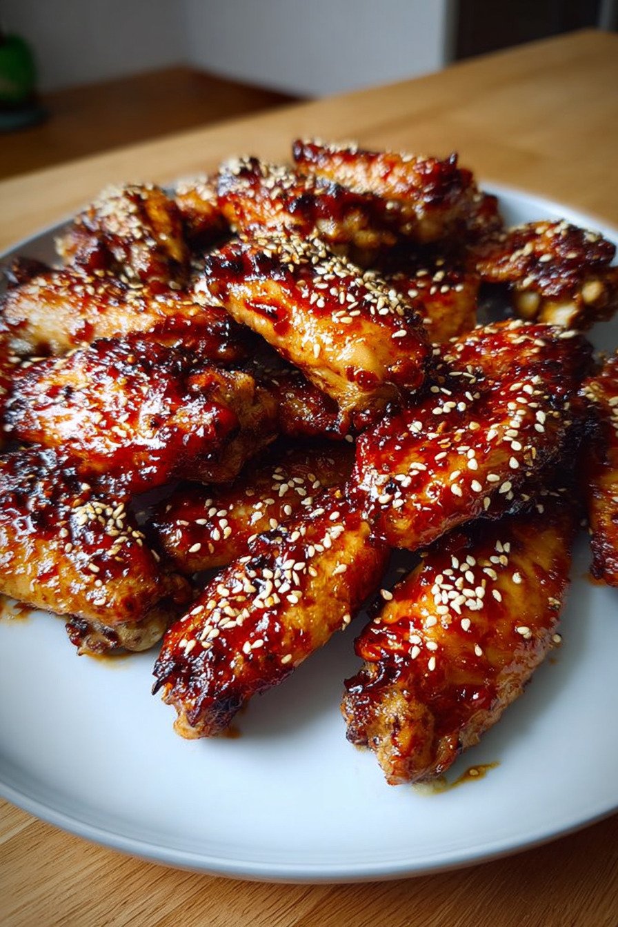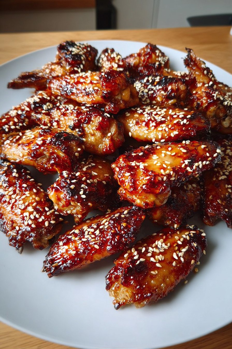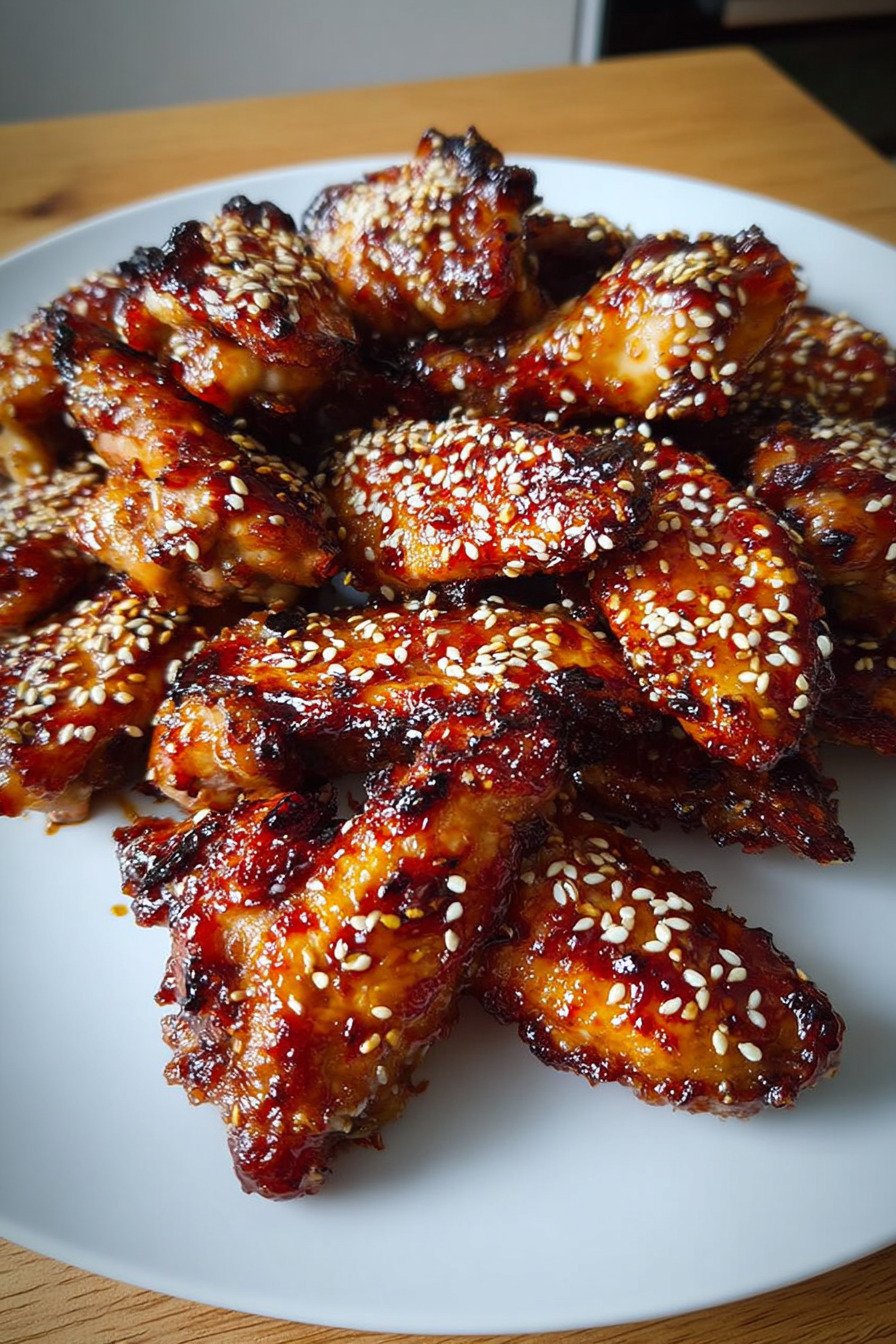 Green onions and sesame seeds I toss these over the platter right before serving. The fresh bite from the onions and the gentle crunch from the seeds turn a simple pan of wings into a plate that feels ready for guests.