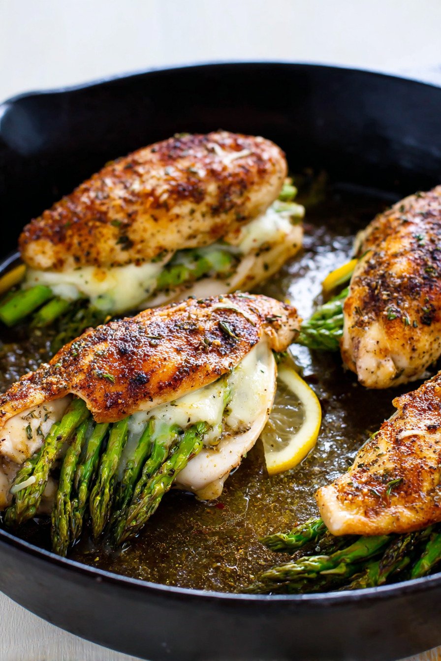 Boneless Skinless Chicken Breast Recipes have a place in my weekly plan. They cook fast and carry flavor without fuss. The filling brings creaminess and a light lemon lift. The asparagus looks like a green ribbon tucked inside. We slice and hear a little crunch from the stalks. That moment tells us the timing hit the mark. High Protein Recipes do not need long shopping lists. They need care and a good sear. This one proves it.