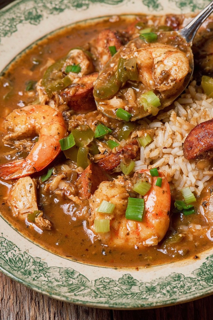 This gumbo recipe brings deep flavor from a dark roux, smoky sausage, tender chicken, and fresh shrimp. I cook it low and give it time. The pot rewards patience with rich broth and bold spice.