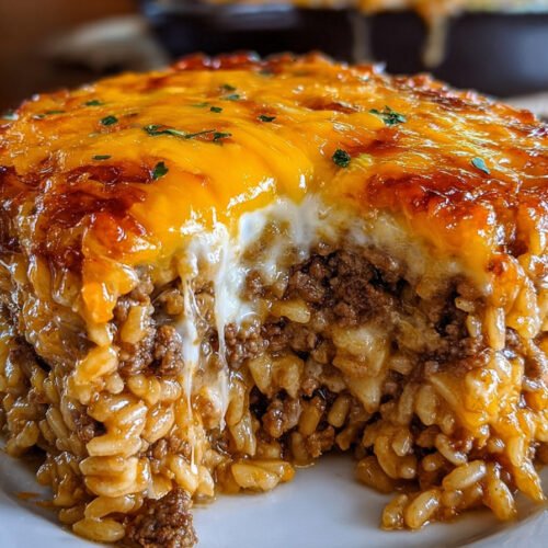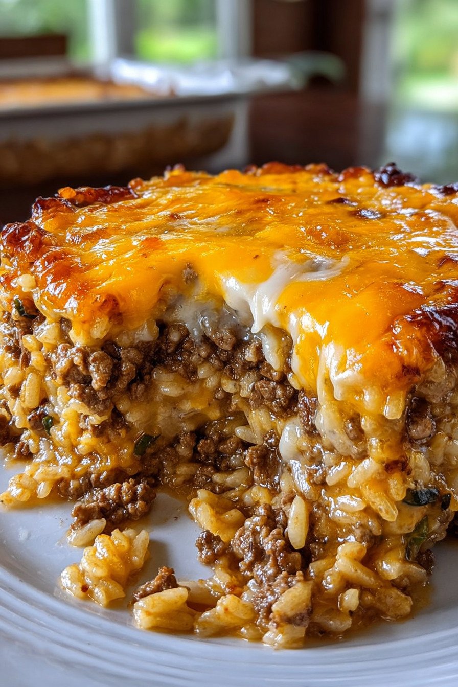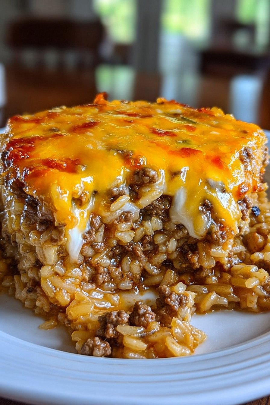 This casserole dinner draws from cheesy rice comfort and ground beef rice ease. I keep seasonings simple so the rice and beef lead. The sauce turns creamy and smooth. The bite feels cozy and steady. No fuss. No show. Just dinner that shows up.