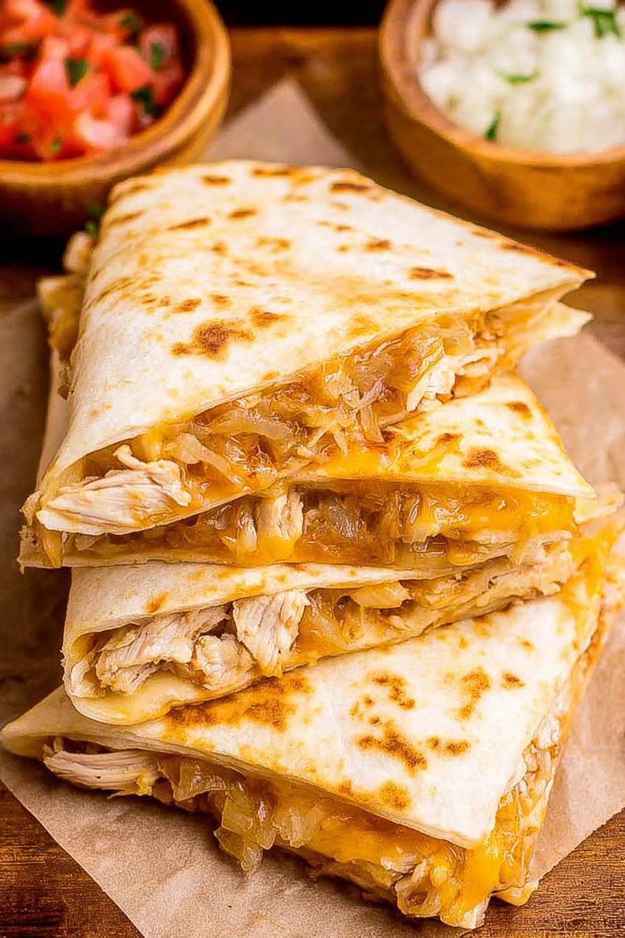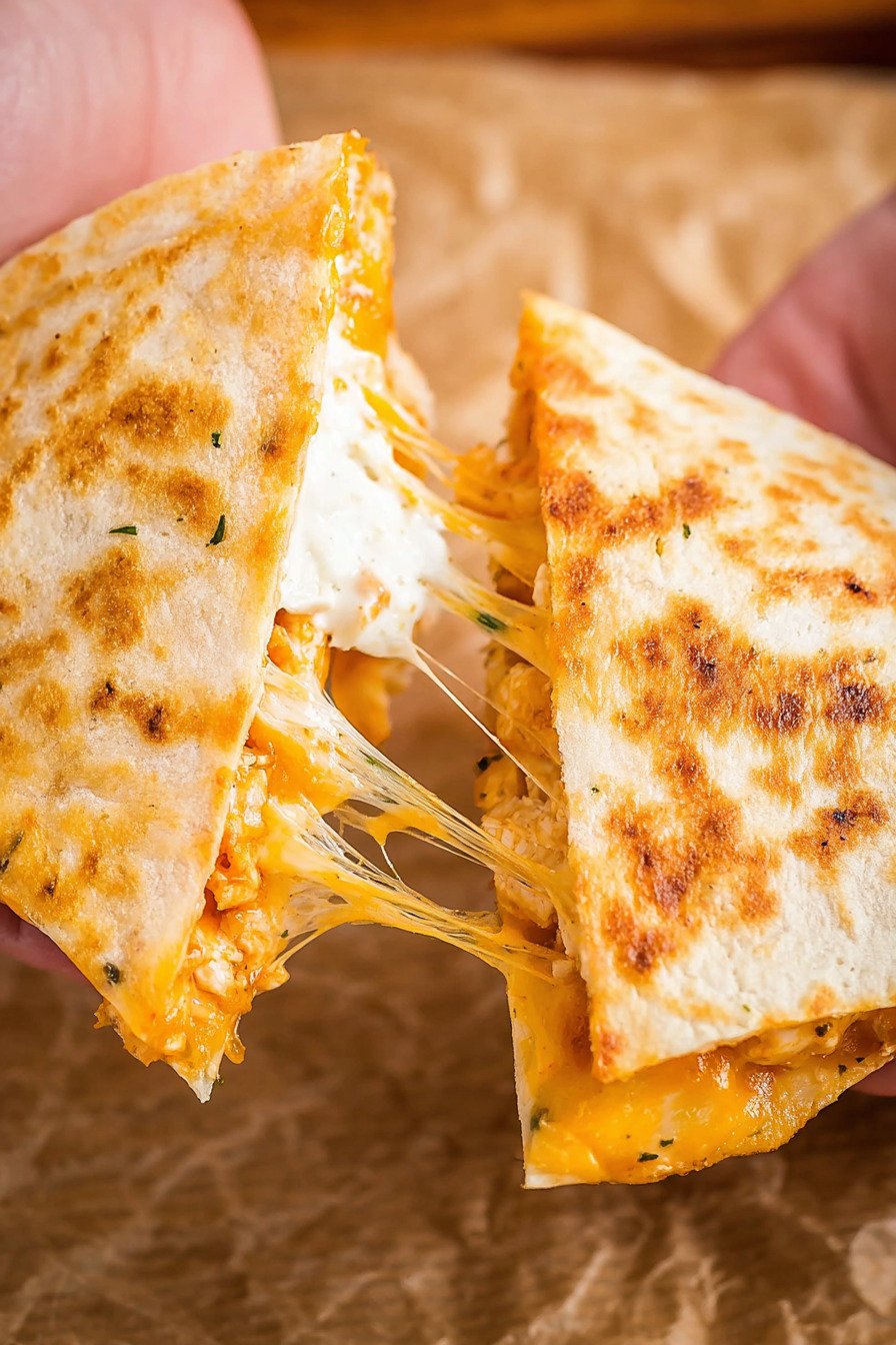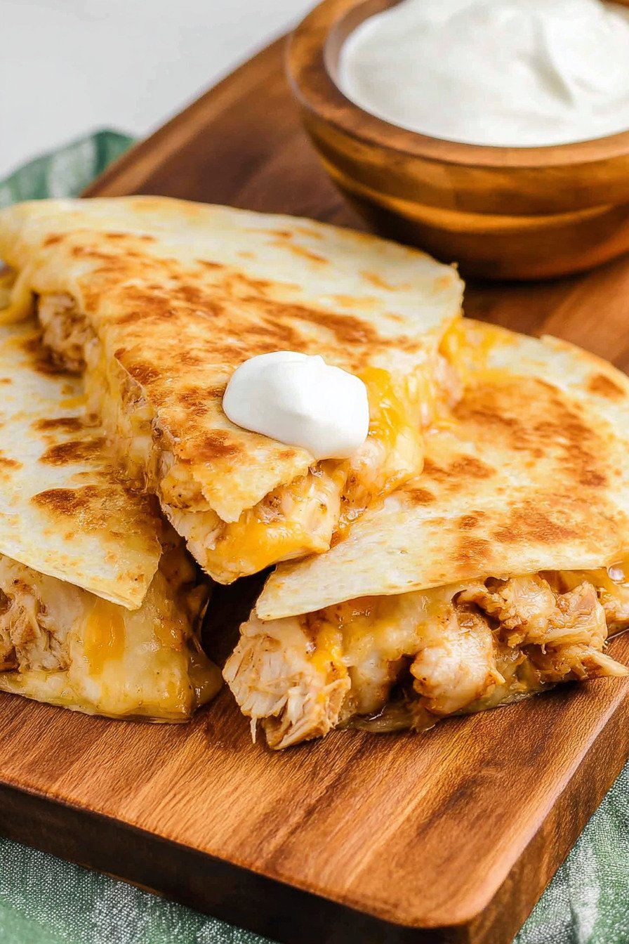 This recipe is excellent for prepping ahead because the filling can be made in advance and stored until you are ready to cook. Simply season the chicken, mix any sauce, and prepare optional add-ins like bacon or vegetables. Once everything is ready, assembling the quesadillas takes only a few minutes.