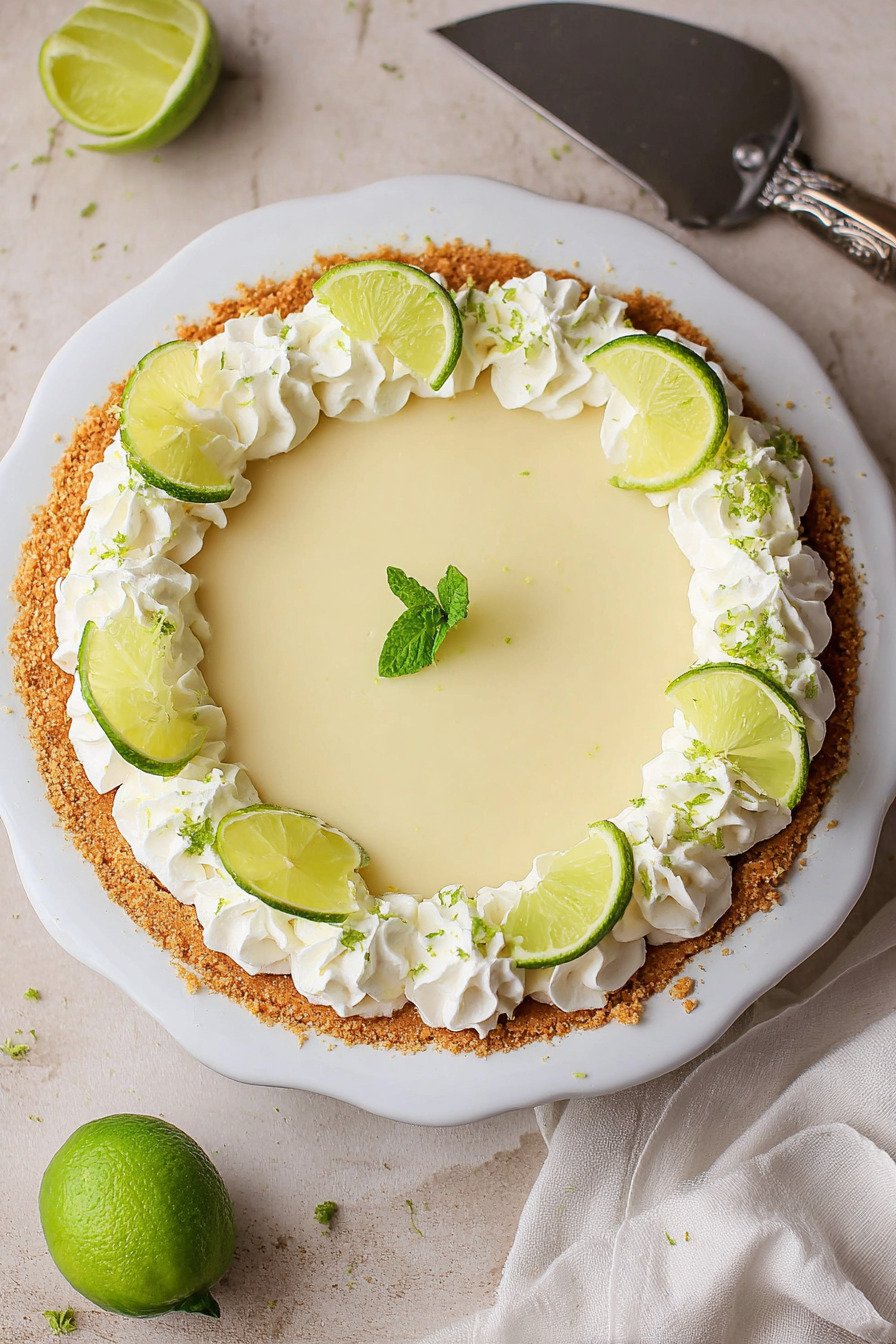 If you want to experiment, this pie is easy to customize. You can make mini pies, turn the filling into a key lime pie bars recipe, or create a chilled variation inspired by a key lime pie recipe no bake dessert. For an elegant finish, add thin lime slices or a touch of extra zest right before serving.