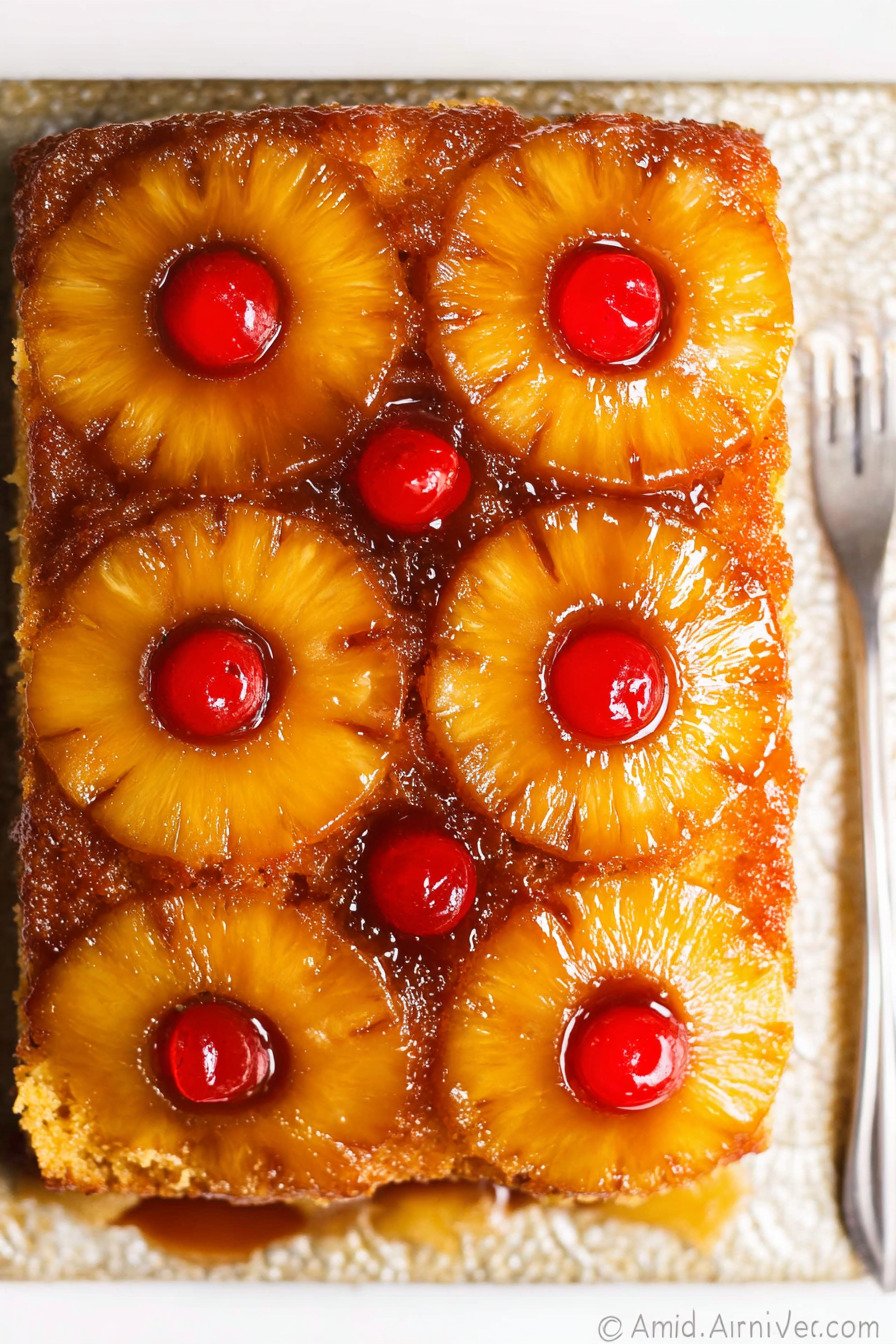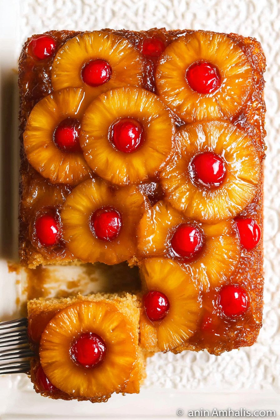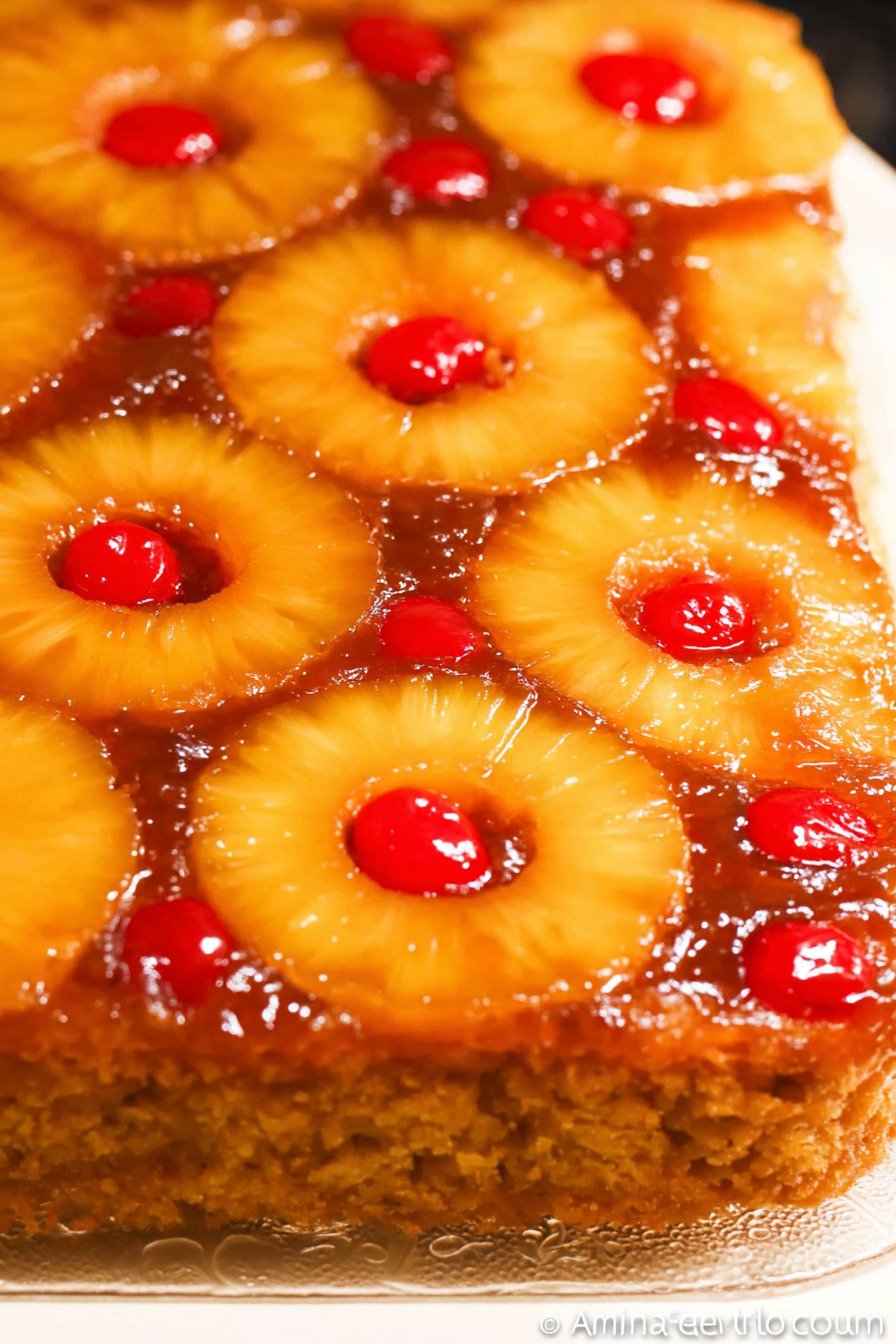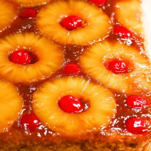 Pineapple Rings Pineapple rings are the signature topping in this cake, bringing bright tropical flavor, natural sweetness, and the beautiful classic look that makes this dessert instantly recognizable.
