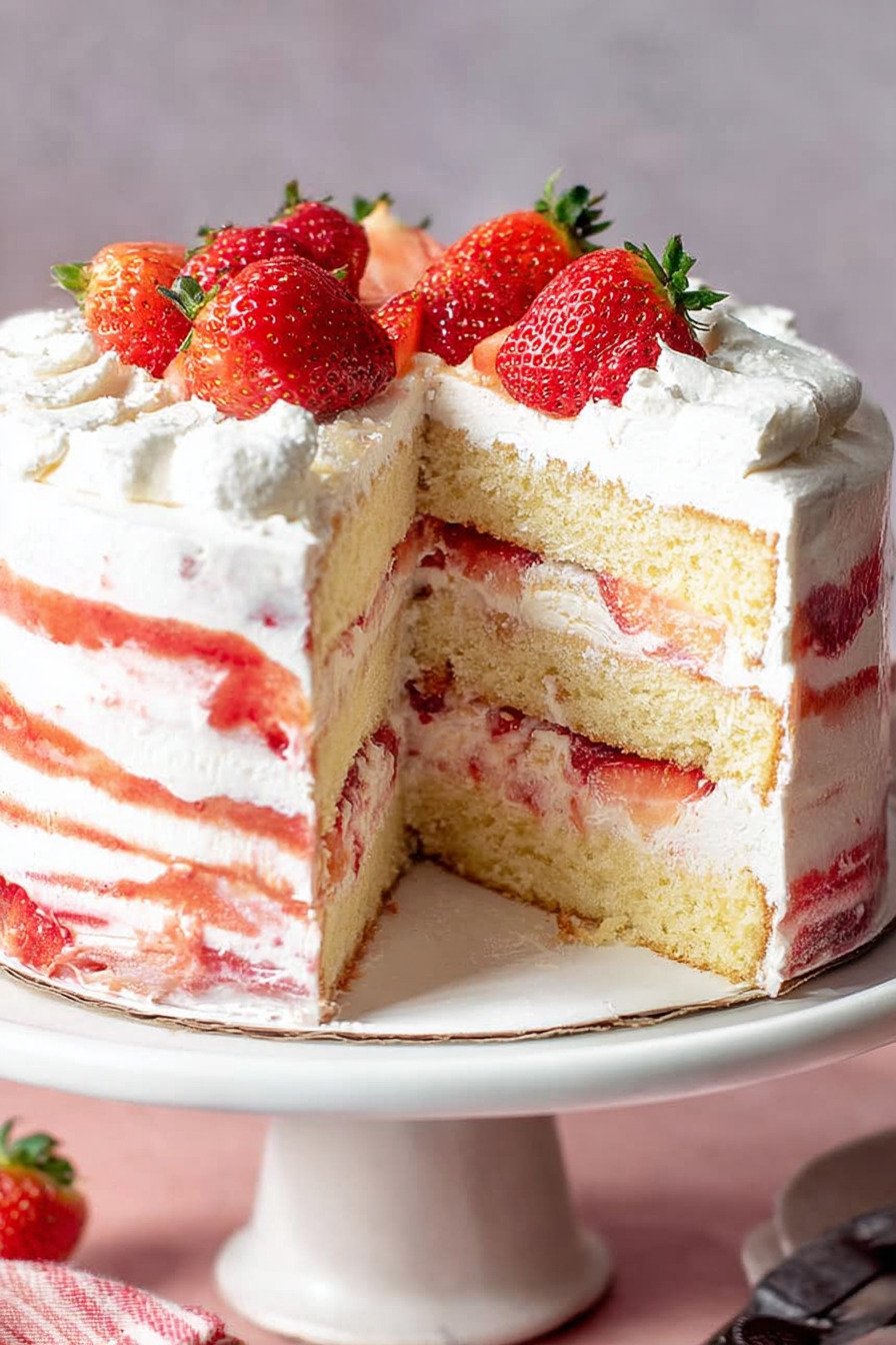 This strawberry cake is a beautiful twist on the beloved strawberry shortcake, bringing together soft sponge layers, fresh berries, and fluffy cream into one irresistible dessert. Inspired by traditional strawberry shortcake recipes, this version feels elevated yet approachable, making it perfect for both casual baking and special occasions.