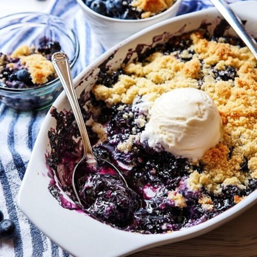 I often bake this in the morning and serve it after dinner. The flavors rest and settle. The top keeps a light crunch. It warms well and still tastes bright. Blueberry Recipes sit well in this plan since the fruit stands up to time.