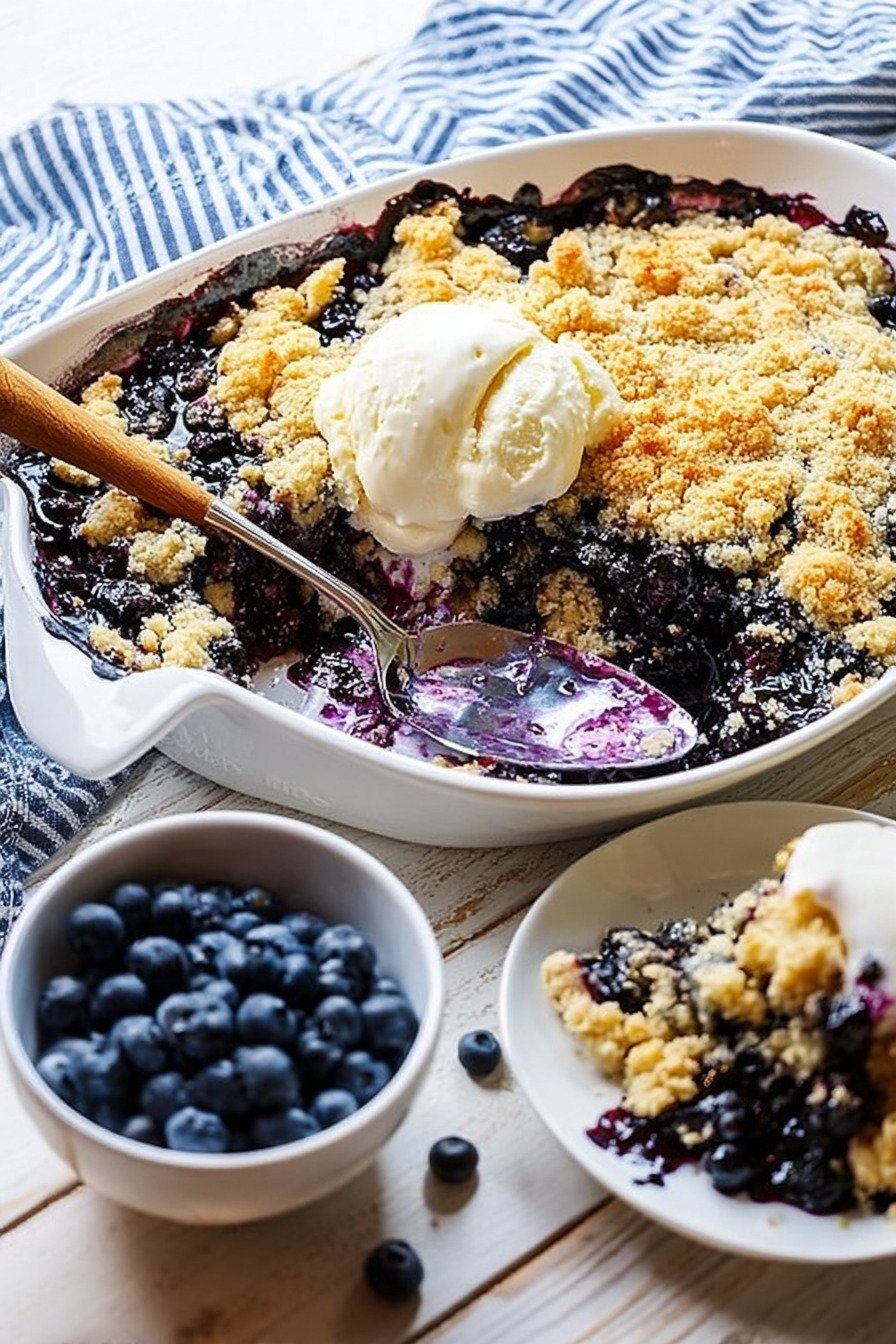 I bake this on weeknights when time feels short and my sweet tooth gets loud. The batter stays simple. The fruit does the heavy lifting. Blueberry Recipes keep me grounded and this one sits at the top of my list. The top turns crisp. The berries pool into a thick sauce. Scoops of vanilla sit beside and melt into the edges.