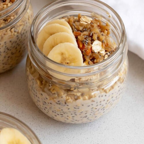 This recipe is built for batch prep. I usually make four or five jars at once on Sunday night. Just line them up on the counter like little soldiers waiting to serve breakfast duty.
