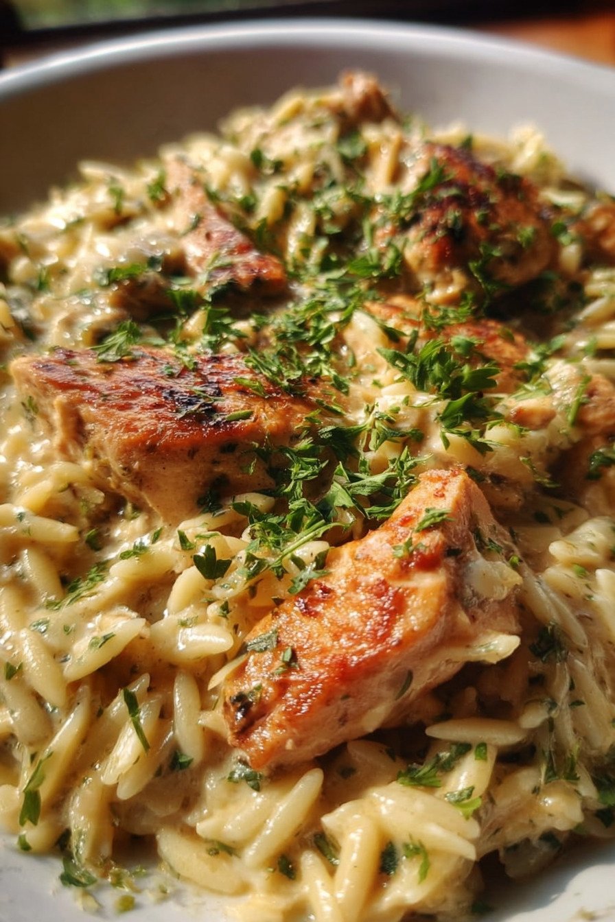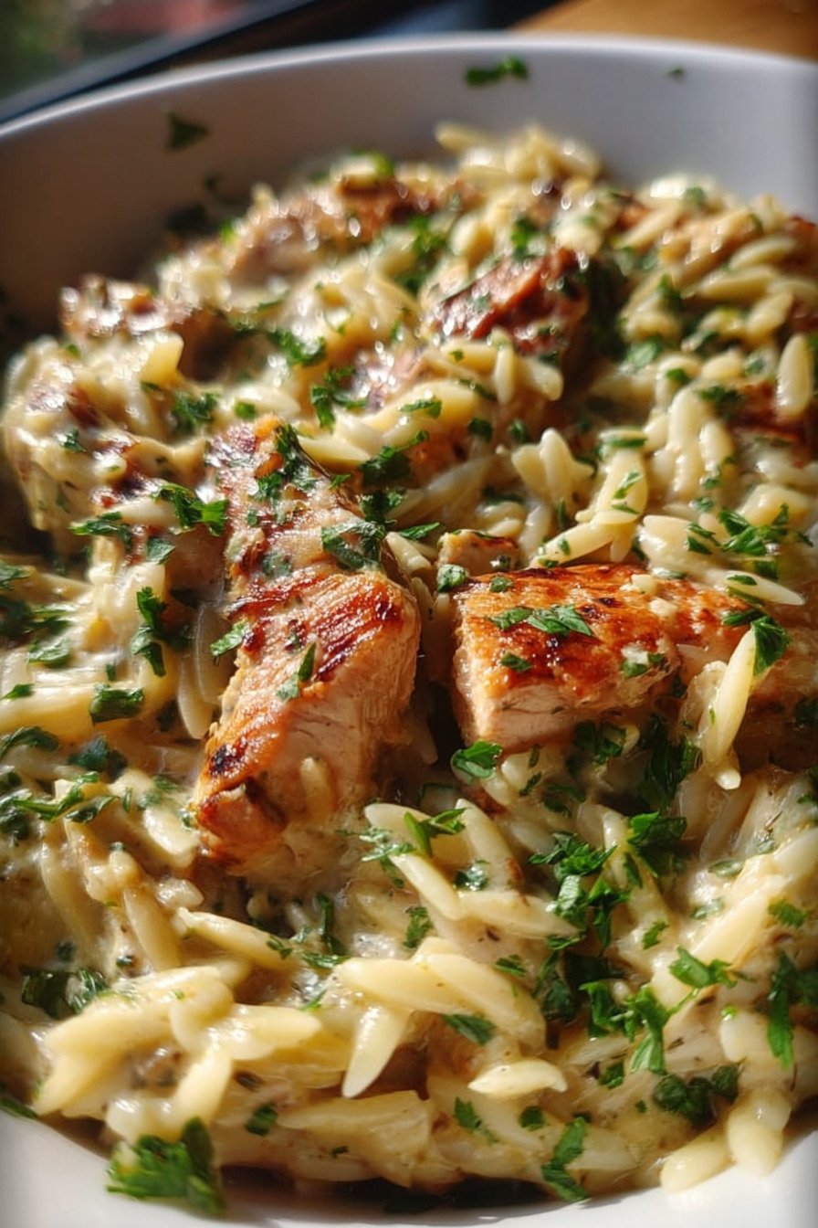 I make this dish on nights when I want comfort without fuss. These Chicken Pasta Recipes bring together Creamy chicken recipes, Parmesan chicken, and Orzo pasta recipes in one warm skillet. If you love Comfort food chicken and hearty Chicken and pasta dishes, this one fits right in with your favorite Creamy pasta recipes. The chicken turns golden in the pan, and the garlic hits the heat with that smell that makes everyone wander into the kitchen. I stir in orzo and broth, then watch it swell and soften. The sauce turns rich and smooth, and the Parmesan melts into every bite. We end up standing by the stove with forks, sneaking tastes. I like how this meal feels steady and honest. It fills you up and settles the day. You get tender chicken, soft pasta, and a creamy sauce that clings to the spoon. It is simple food, cooked with care, and it never lets me down.