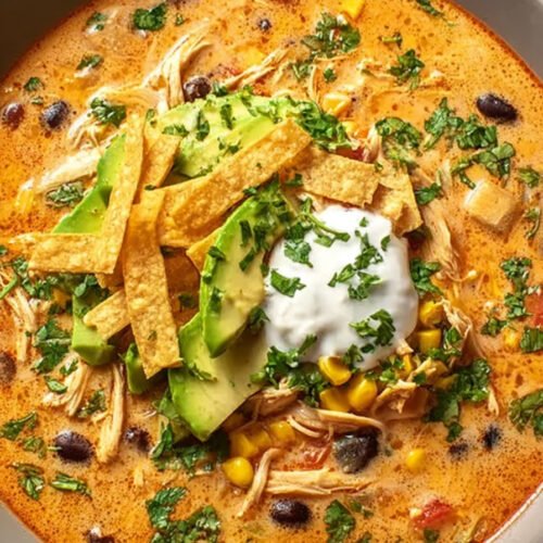 I make chicken tortilla soup when the day runs long and I want calm. The pot warms fast and the smell feels like home. This chicken tortilla soup lands creamy and rich without fuss. It is an easy chicken tortilla soup recipe that still tastes slow and deep. Each spoon brings soft chicken, tender corn, and a gentle heat that lifts the mood. We keep the steps light so dinner feels kind. I toast the spices. I add broth. I let the soup simmer and breathe. Tortilla strips turn crisp and add a happy crunch. The base stays silky like a cozy creamy chicken soup. You can top it with lime, avocado, or a small rain of cheese. It is real comfort in a bowl of soup. This pot fits busy nights and lazy Sundays. It plays well with tortilla recipes and other easy creamy chicken recipes. If you need a quick win or a friendly recipe with tortilla, this one shows up ready to help. We cook. We taste. We sit. And in a few quiet minutes the table feels full and everyone settles in.