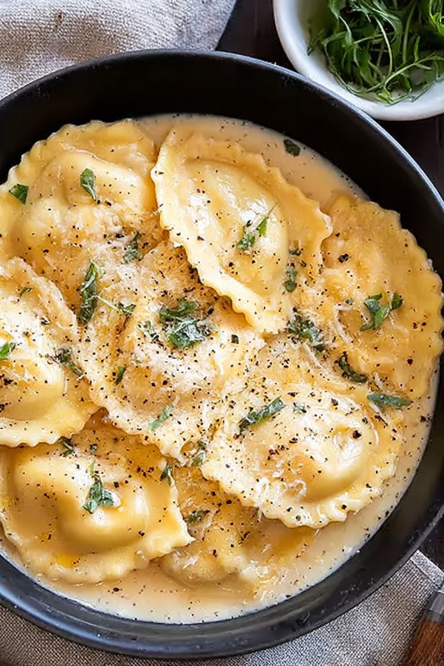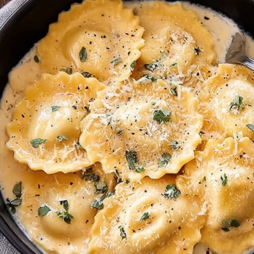 I cook this ravioli recipe on nights when the kitchen needs comfort and not a long plan. A pan, butter, garlic, cream, and a quiet snowfall of parmesan turn simple pasta into dinner that makes people pause after the first bite. I started making it years ago when a bag of store ravioli sat in my fridge and I had no energy left. The sauce came together fast and the smell filled the whole place. That was the moment I kept the idea. This bowl works for many moods. You can try a ravioli recipe homemade when you feel patient, or grab a pack from the store for an easy ravioli recipe that still tastes rich. The garlic parmesan sauce recipe coats each pocket of pasta and feels like the best ravioli recipe when the day has been long. Some nights I use a mushroom ravioli recipe from the market. Other days friends bring a vegan ravioli recipe and the sauce shifts a bit yet the comfort stays. I like how forgiving this dish feels. Stir the garlic, pour the cream, add cheese, taste with a spoon. The sauce thickens slowly and the kitchen smells warm and calm. We sit down, pass bowls, and laugh at how something so simple turns into dinner that everyone asks for again.