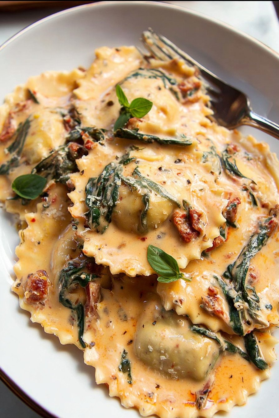Creamy Tuscan Ravioli Recipe with Rich Garlic Parmesan Sauce