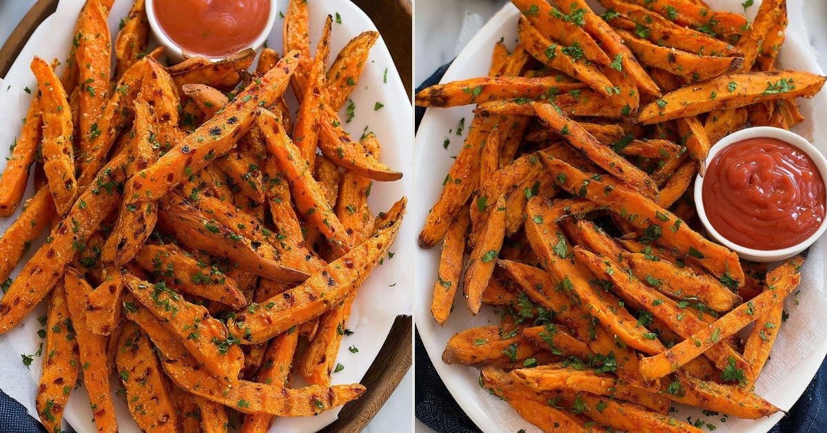 I still remember the first time we tried this sweet potato fries recipe at home. The kitchen filled with that warm roasted smell and everyone drifted in to ask what was cooking. We wanted fries that felt light yet full of flavor. After a few trays and a few laughs we landed on a batch that came out crisp at the edges and soft inside. That small win turned into a habit. These fries fit many moods. Some nights we crave Baked Fries that feel simple and calm. Other nights we lean toward Baked Potato Fries that remind us of diner food yet feel lighter. The method here grew from testing ideas we saw in Cooking Classy Recipes and mixing them with our own small tweaks. The tray slides into the oven and the scent of Healthy Sweet Potato Fries drifts through the room. When the pan comes out you see deep orange strips with golden tips. We pass them around and they vanish fast. Oven Baked Sweet Potato Fries bring that balance of crisp bite and tender center. Homemade Sweet Potato Fries feel honest and warm. No deep fryer. No fuss. Just a good tray of fries we can share with friends or keep all to ourselves on a quiet night.