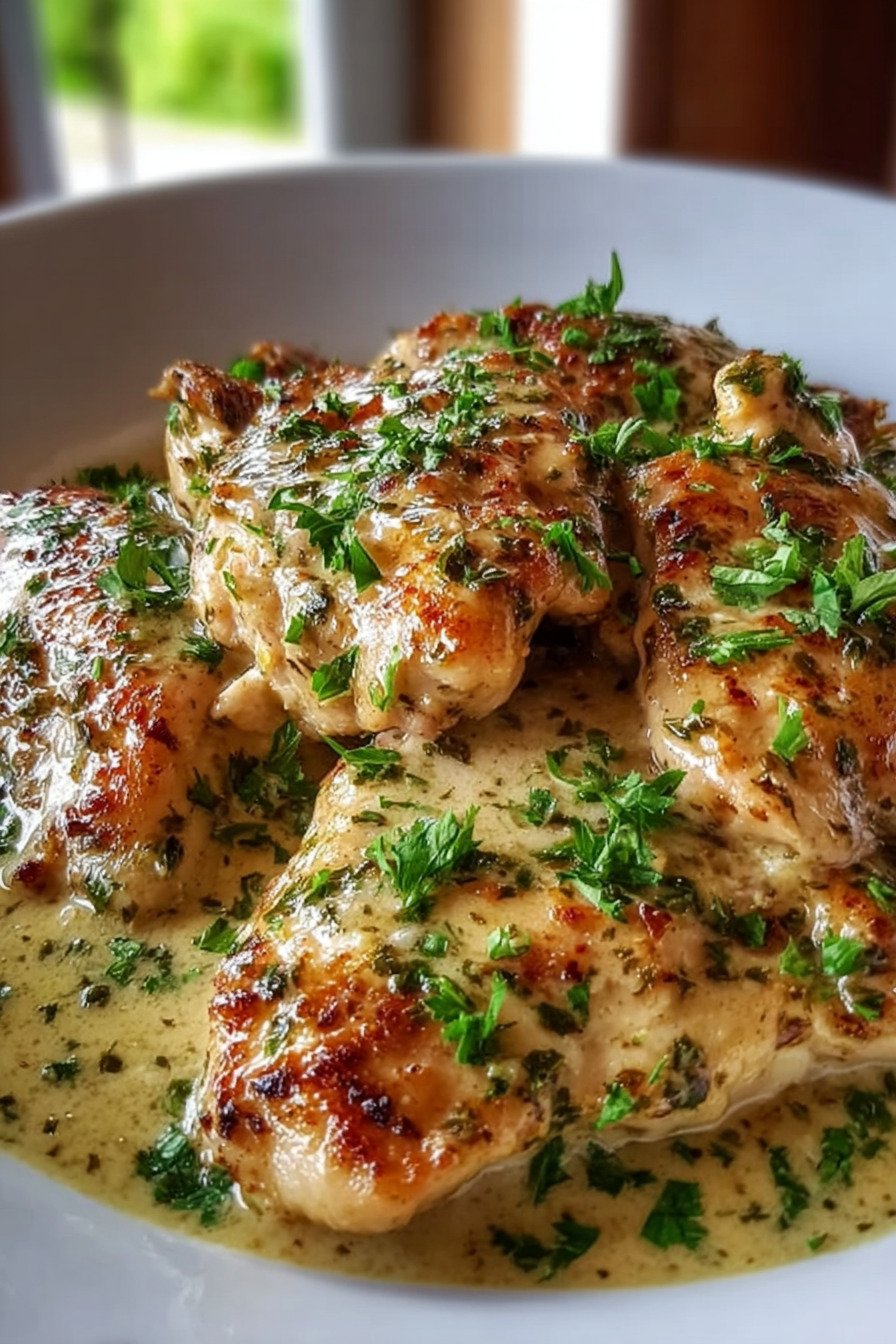 - Serve the chicken and sauce over the pasta. Finish with parsley.