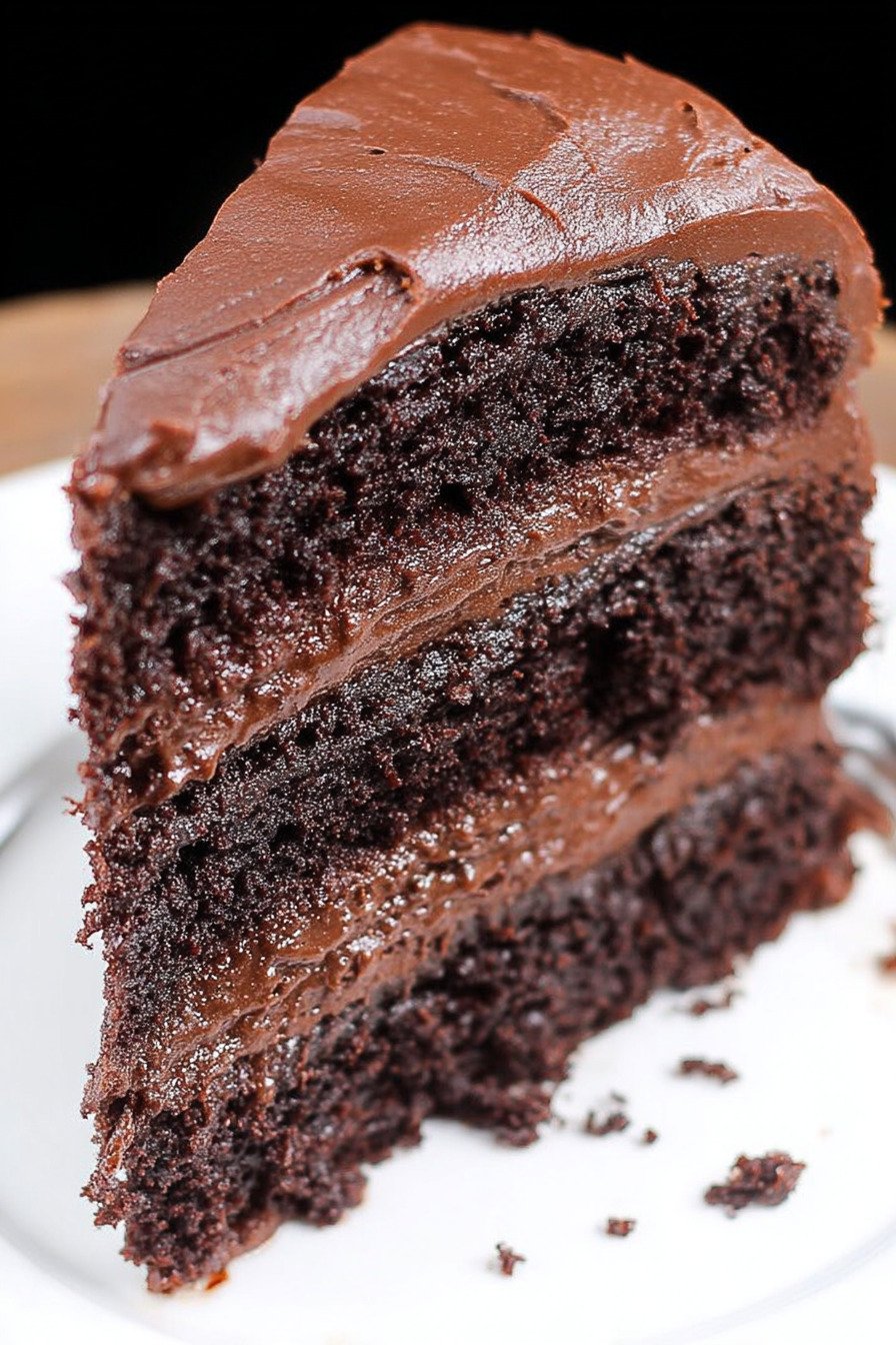 Milk chocolate frosting spreads smooth and light. The whole cake tastes like a hug and slices clean for parties or quiet nights.