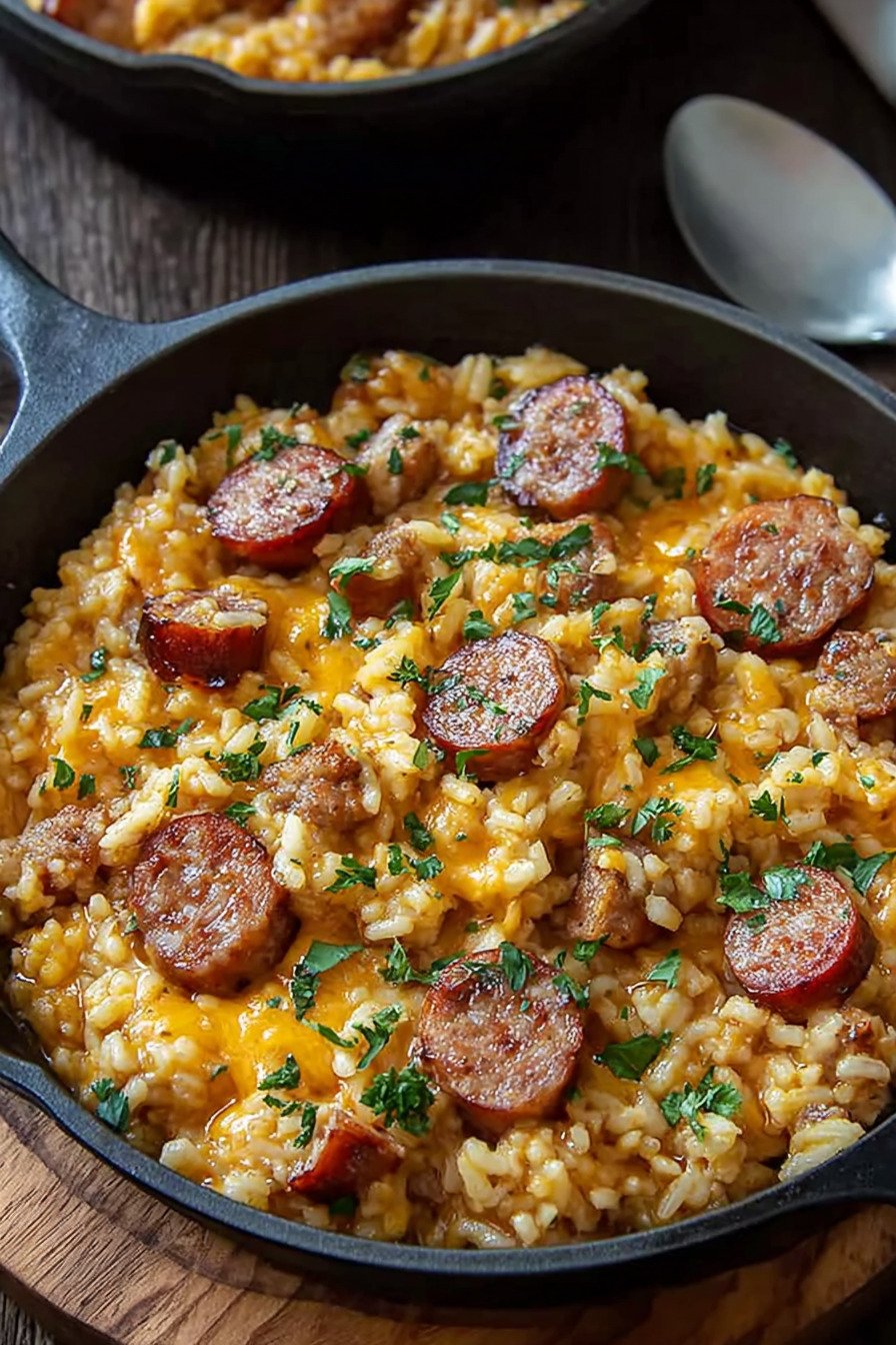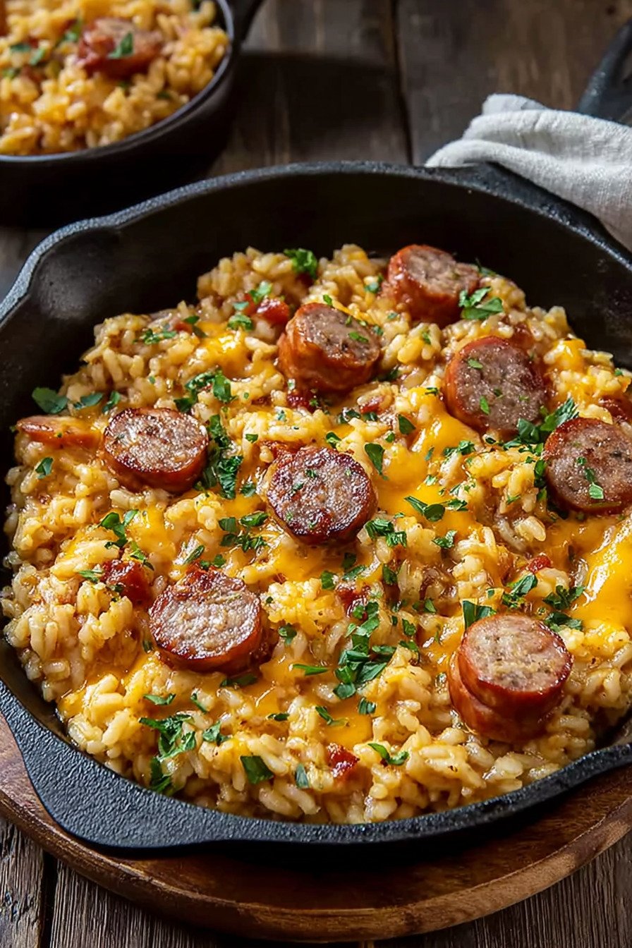 • 9 Easy Cheesy Chicken Sausage and Rice Skillet