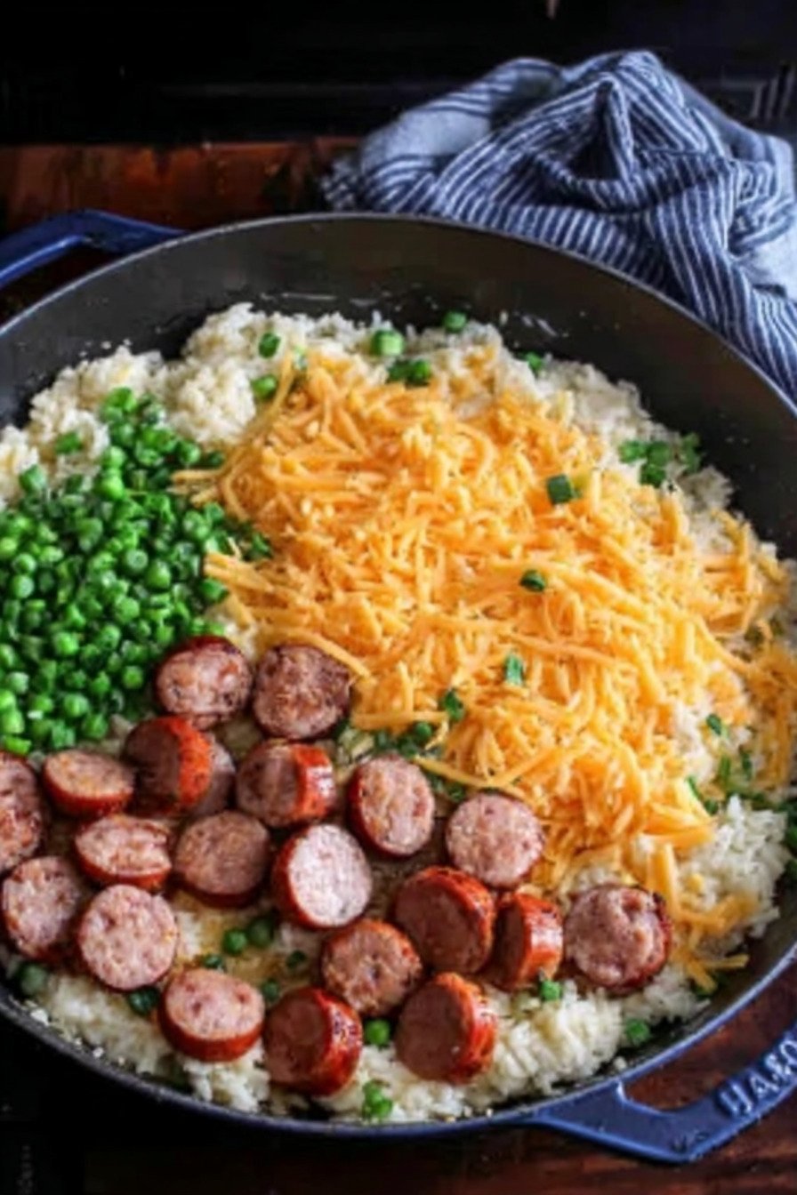Rice turns tender. Cheese turns creamy. Chicken sausage brings smoky notes. The steam smells like pepper and garlic. The bite feels hearty with gentle heat. Kids nod. Grown ups ask for more.