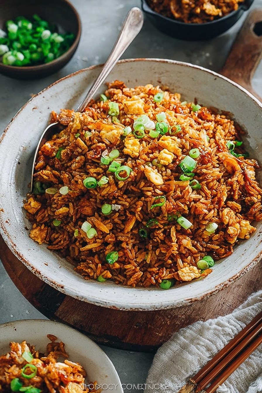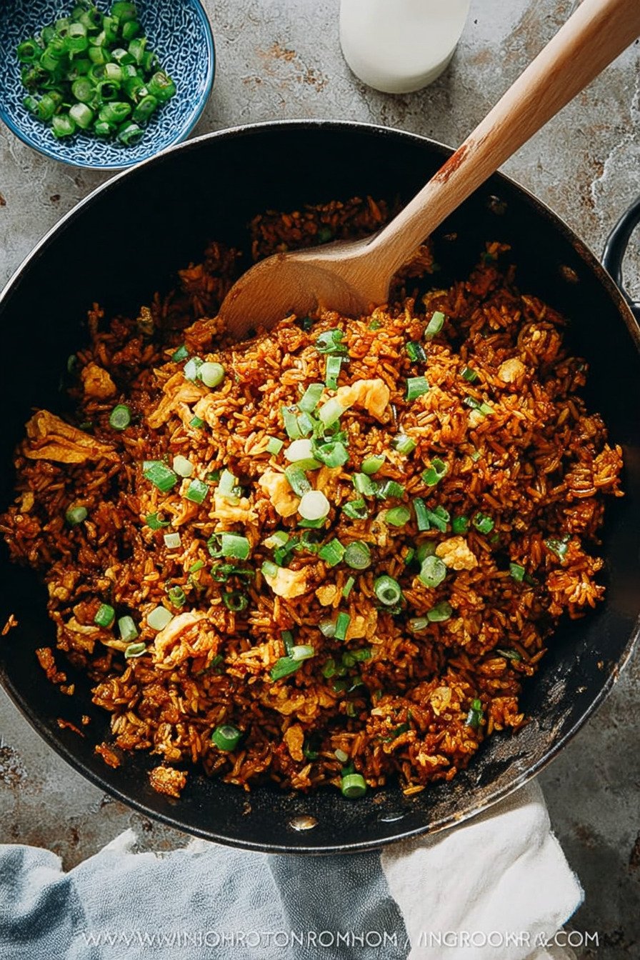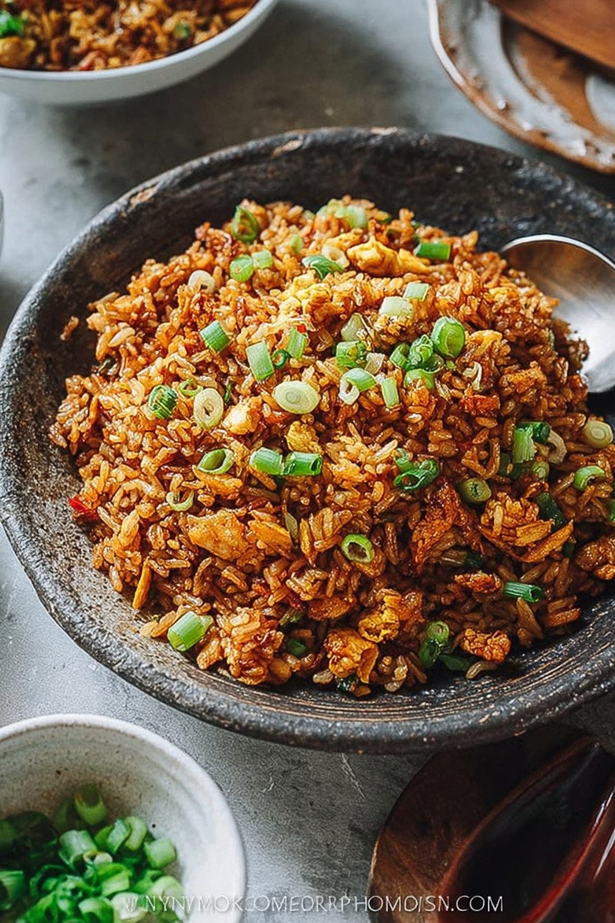 When I crave comfort fast, I turn to this fried rice recipe. It hits every note I love in fried rice recipes, and it works as a simple fried rice recipe for busy nights. If you need a recipe for fried rice that tastes like the best fried rice recipe ever, this is it. I even borrow tricks from my garlic fried rice recipe and a bold mexican fried rice recipe to build flavor. I cook this on weeknights when the fridge looks bare and hope feels low. Cold rice waits in a bowl. Soy sauce sits by the stove. Garlic sizzles in oil and the smell fills the kitchen in seconds. I stir, taste, adjust, and smile. The rice turns deep brown and glossy, with crisp bits that cling to the pan. We eat it straight from warm bowls. I like mine with extra scallions and one more splash of soy sauce. You can toss in eggs, peas, or bits of leftover chicken. Each batch feels a little different. That is the charm. It is simple food that feeds us well and never lets me down.