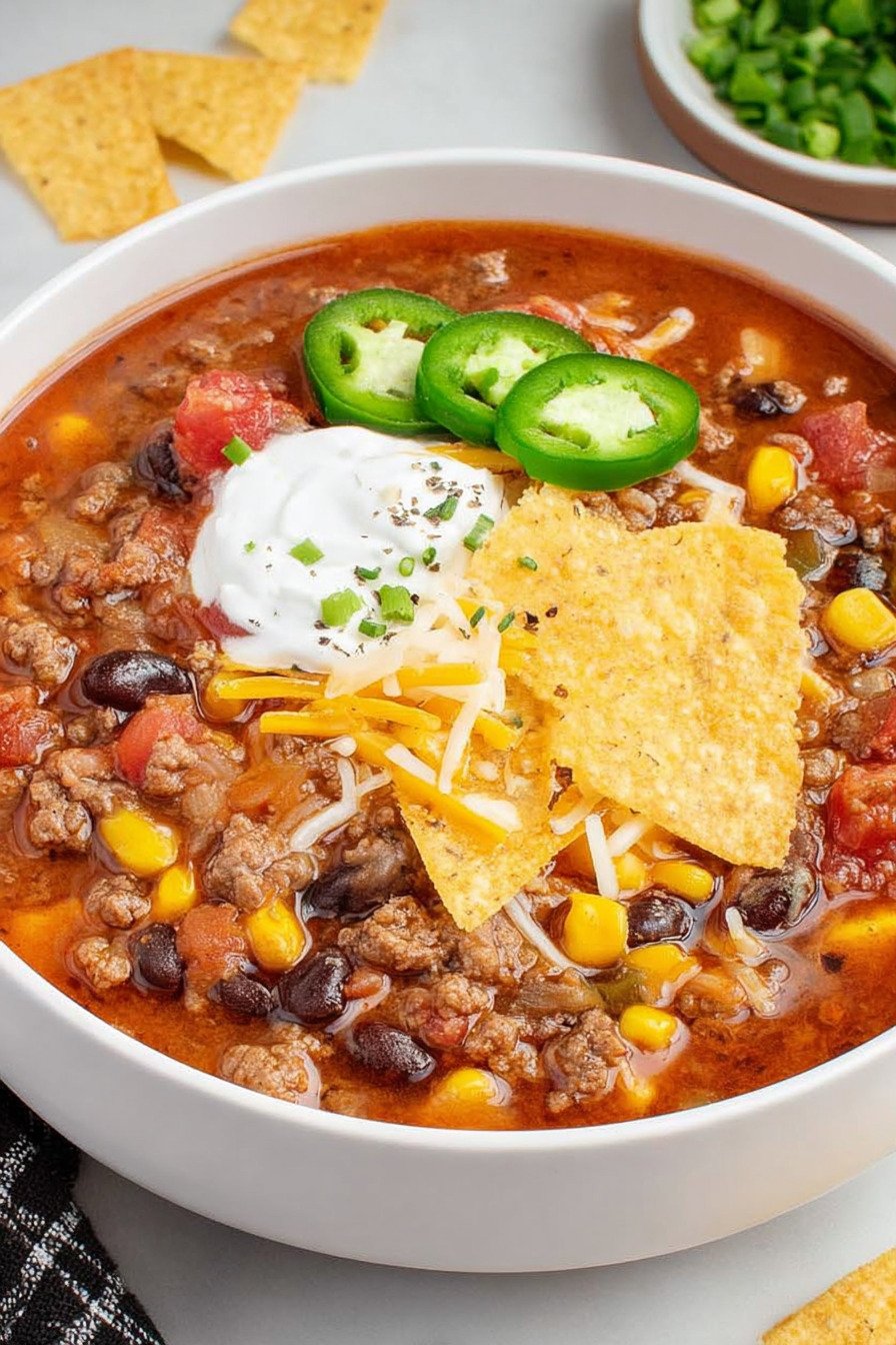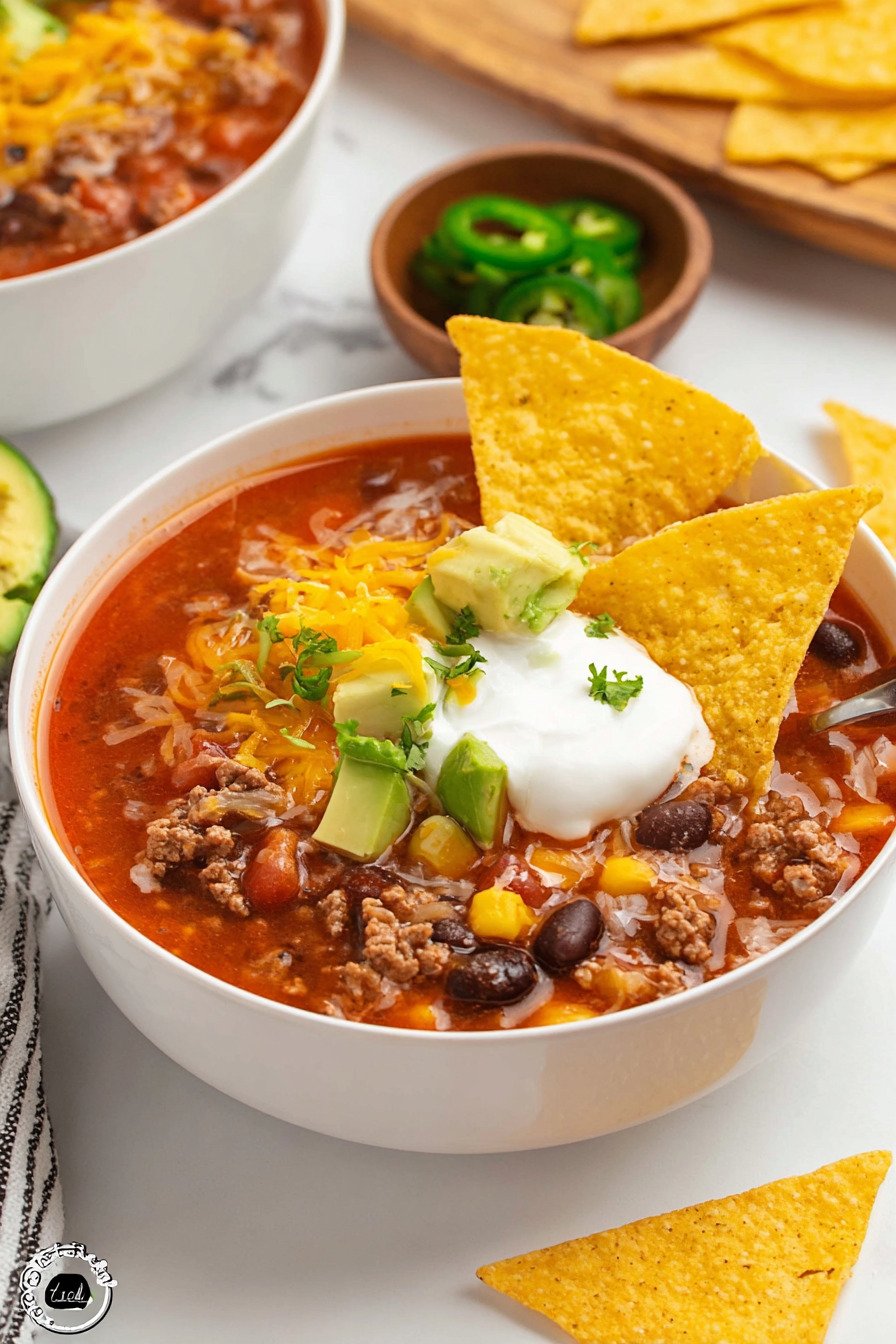 - A hearty soup recipe packed with bold flavors inspired by classic taco recipes.