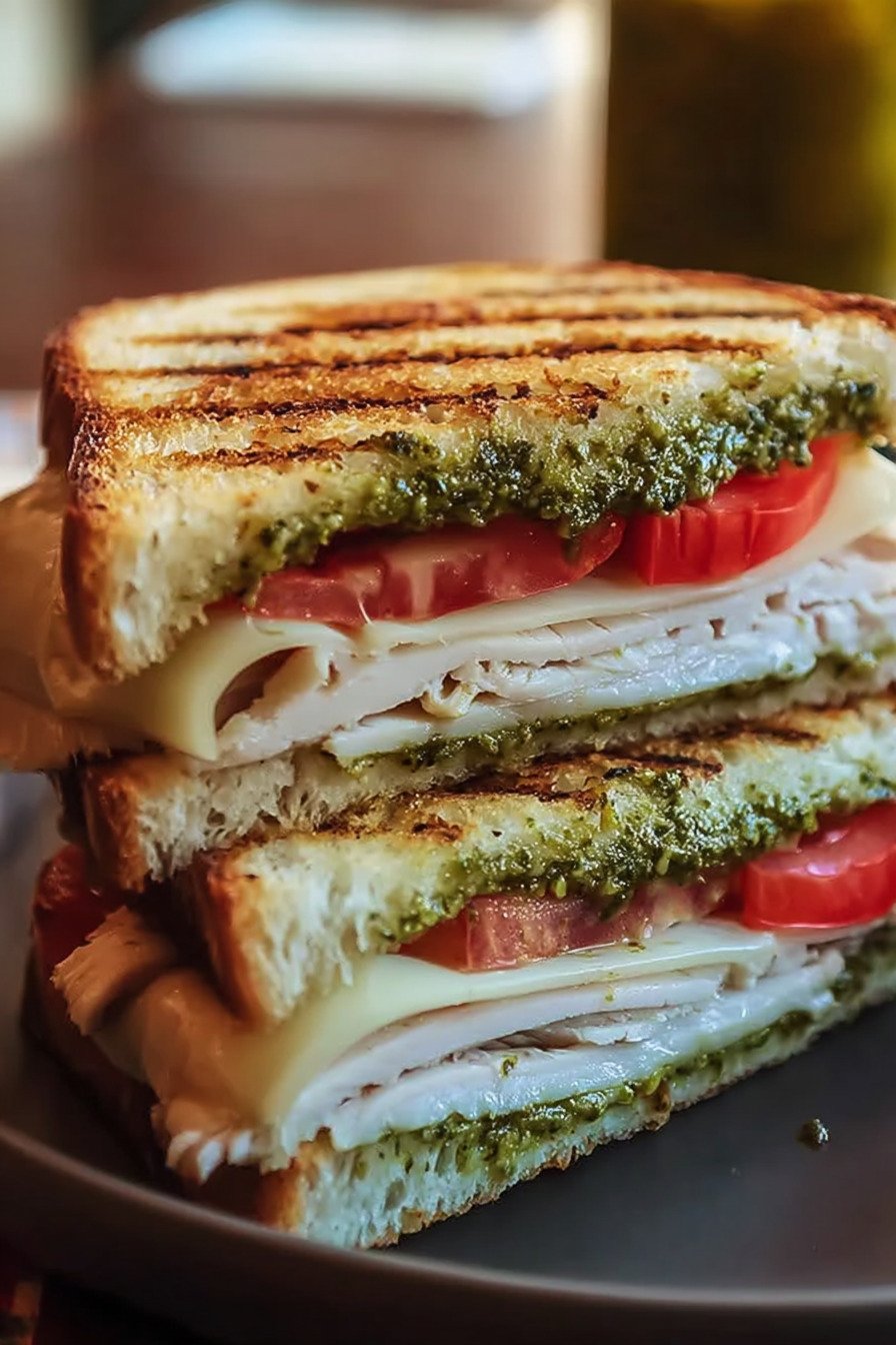 For extra texture, add thinly sliced red onion, roasted red peppers, or crispy bacon. If you want to make it feel more like an easy pesto recipe dinner, serve it pressed and hot with a bowl of tomato soup. You can even use leftover grilled chicken instead of turkey if that is what you have on hand.