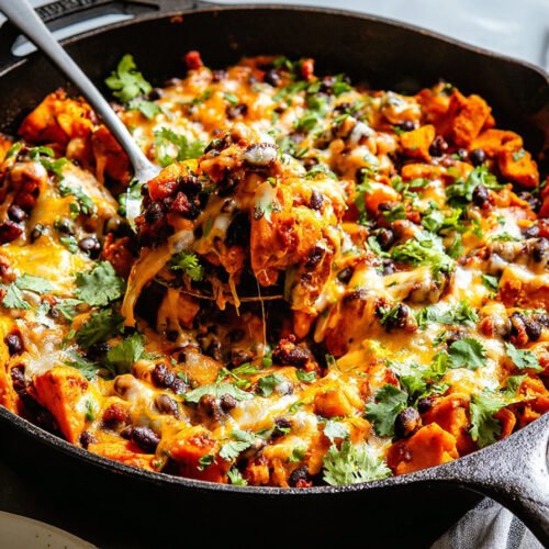 Keywords: 1 Pot Meals, 3 Ingredient Dinner Recipes, Baked Casserole Recipes, bean recipes dinner, black beans, Butternut Pumpkin Recipes, butternut squash, easy vegetarian dinner recipes, enchilada skillet, one pan dinner, Vegetarian Skillet Recipes, weeknight dinner