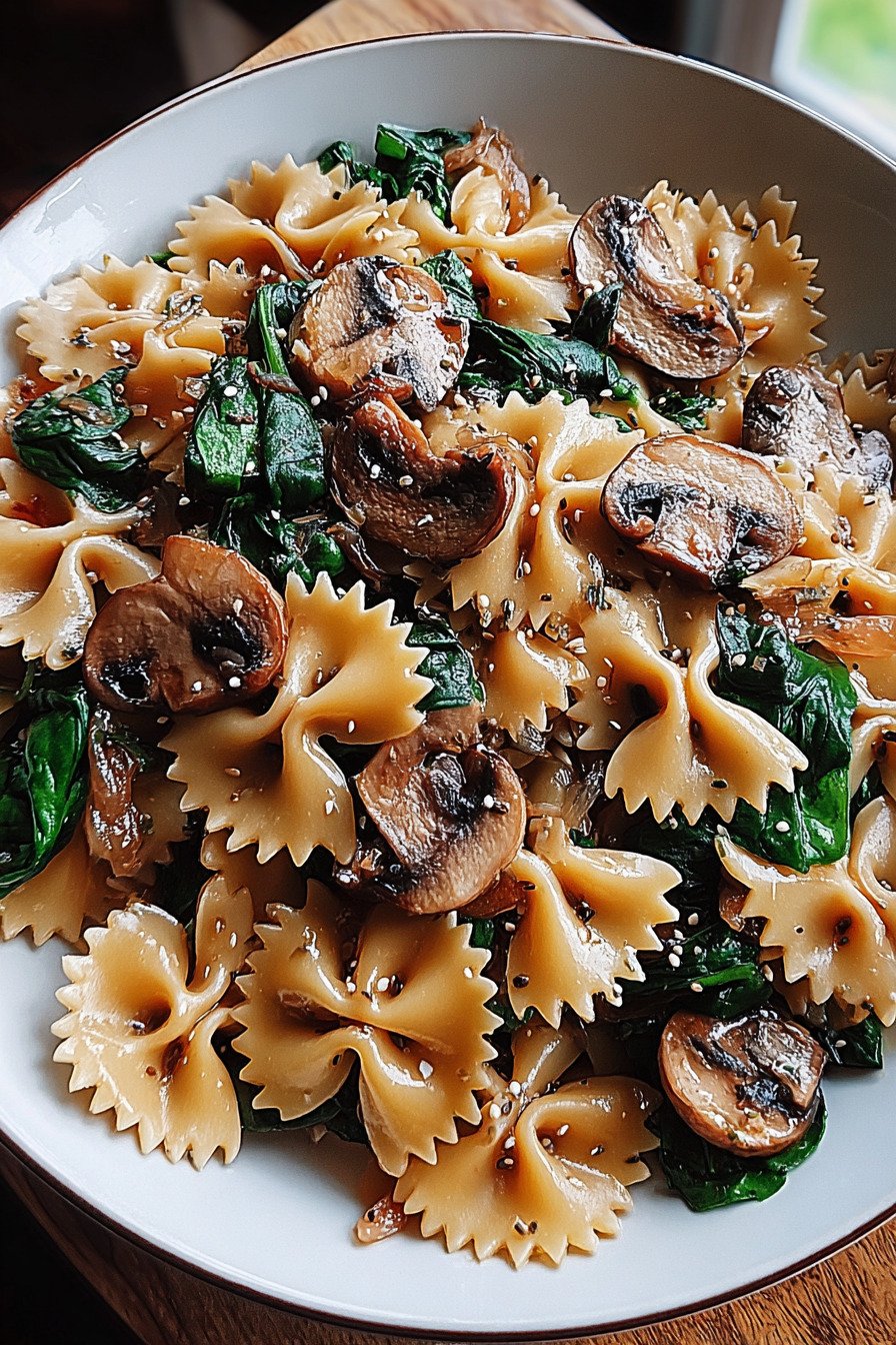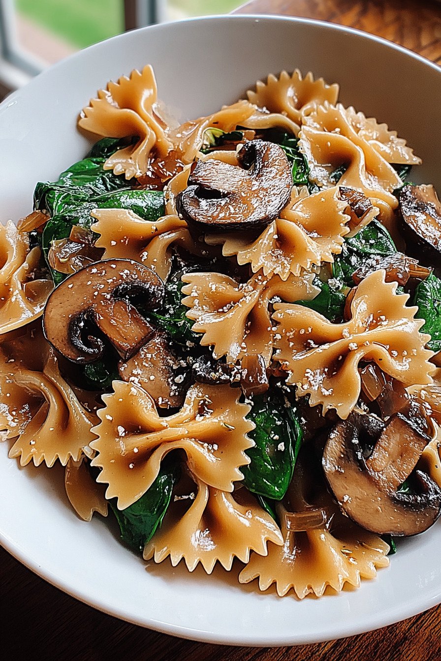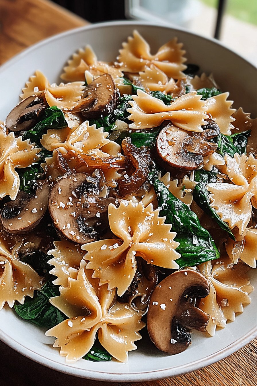 If you’re searching for flavorful spinach dinner recipes that are both comforting and easy to prepare, this farfalle pasta recipe is exactly what you need. Packed with tender pasta, earthy mushrooms, and sweet caramelized onions, this dish brings together the best of spinach recipes for dinner in one satisfying meal. This recipe stands out among mushroom pasta recipes thanks to its rich combination of textures and flavors. The caramelized onion recipes element adds a deep, slightly sweet taste that pairs beautifully with fresh spinach and sautéed mushrooms. It’s a perfect example of how vegetarian pasta dishes can be just as hearty and delicious as any meat-based option. Whether you’re cooking for a weeknight meal or looking for easy dinner recipes with spinach and mushrooms, this dish checks all the boxes. It’s simple, wholesome, and ideal for anyone wanting to explore new spinach dinner recipes while enjoying a comforting bowl of pasta.