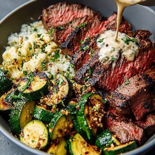 I grill when the air smells like summer and the backyard feels calm. This bowl hits that sweet spot. Tender steak rests on warm grains. Zucchini kisses the grates and turns smoky and soft. A cool herb sauce lands on top and ties every bite together. We sit down, we pass the bowls, and dinner just works. For search fans I will say it clear. Grilling Recipes lead this meal. You get cues from Grilled Zucchini Recipes and Steak Bowl Recipes. The sauce springs from Grilled Sauce Ideas and it stays light for Healthy Grilling Recipes. We stack color and crunch for Grilled Vegetable Bowls. The steak follows Beef Grilling Recipes that prize heat control and a quick rest. I cook this on a weeknight when the day ran long. I pat the steak dry, season it, and breathe for a minute as the grill hums. The first sizzle still makes me grin. Steam lifts from the bowl and the herb sauce chills the heat. Every fork pull brings char, cream, and a quiet little wow.