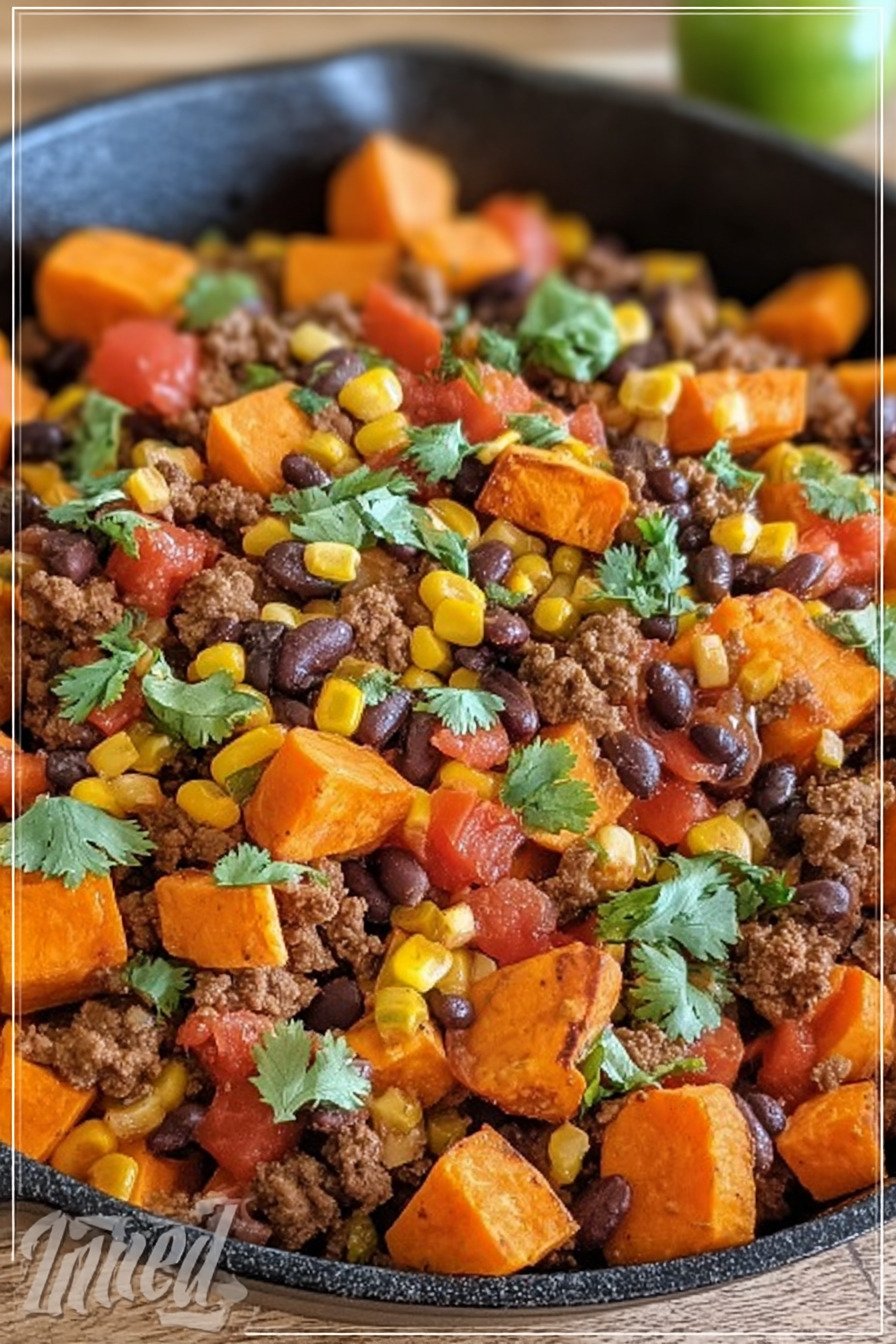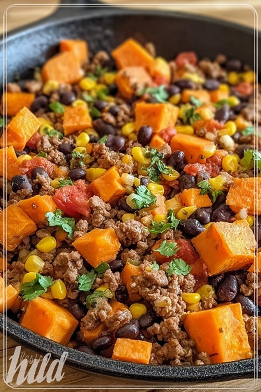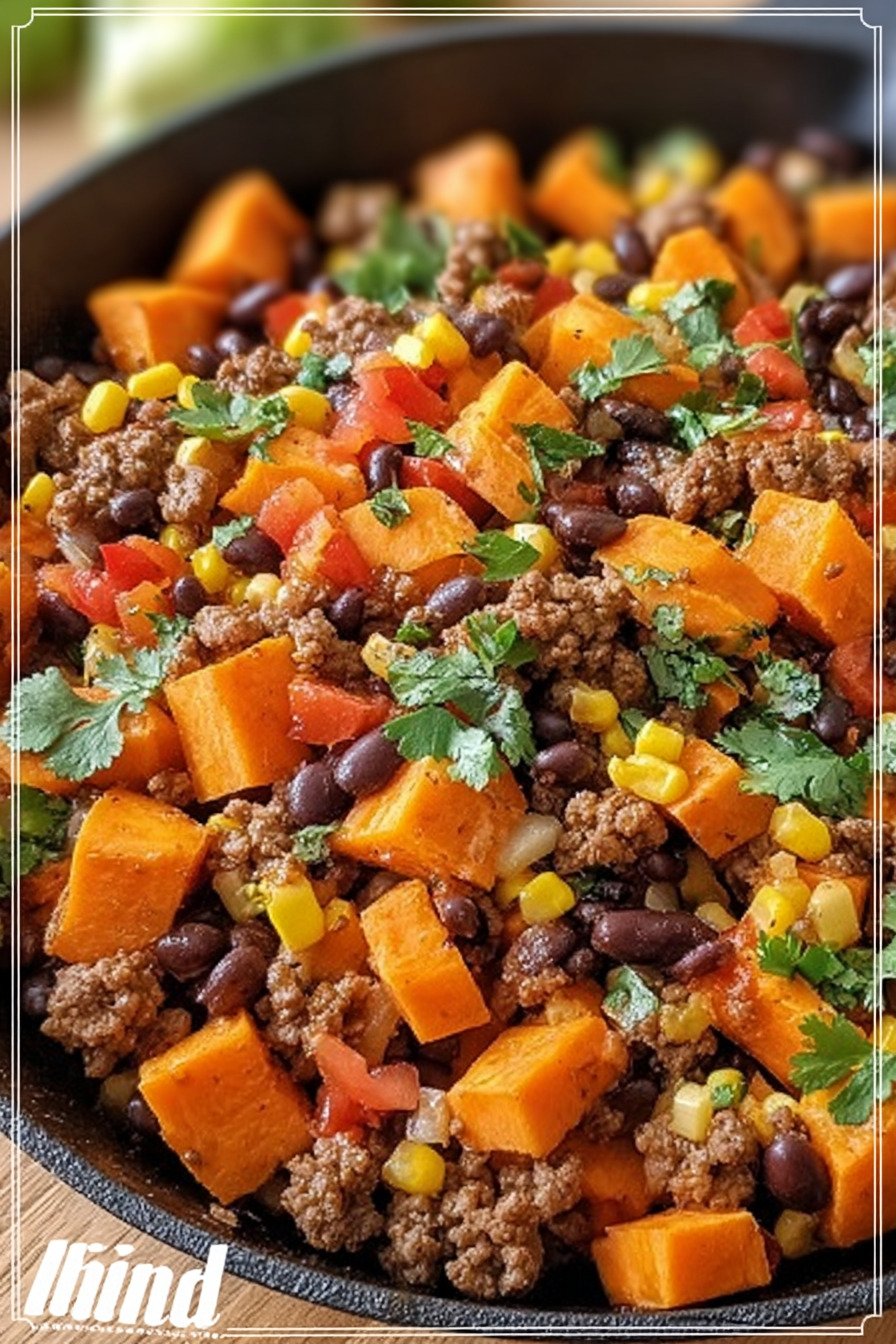2) Easy Southwest Ground Beef Sweet Potato Skillet Recipe
