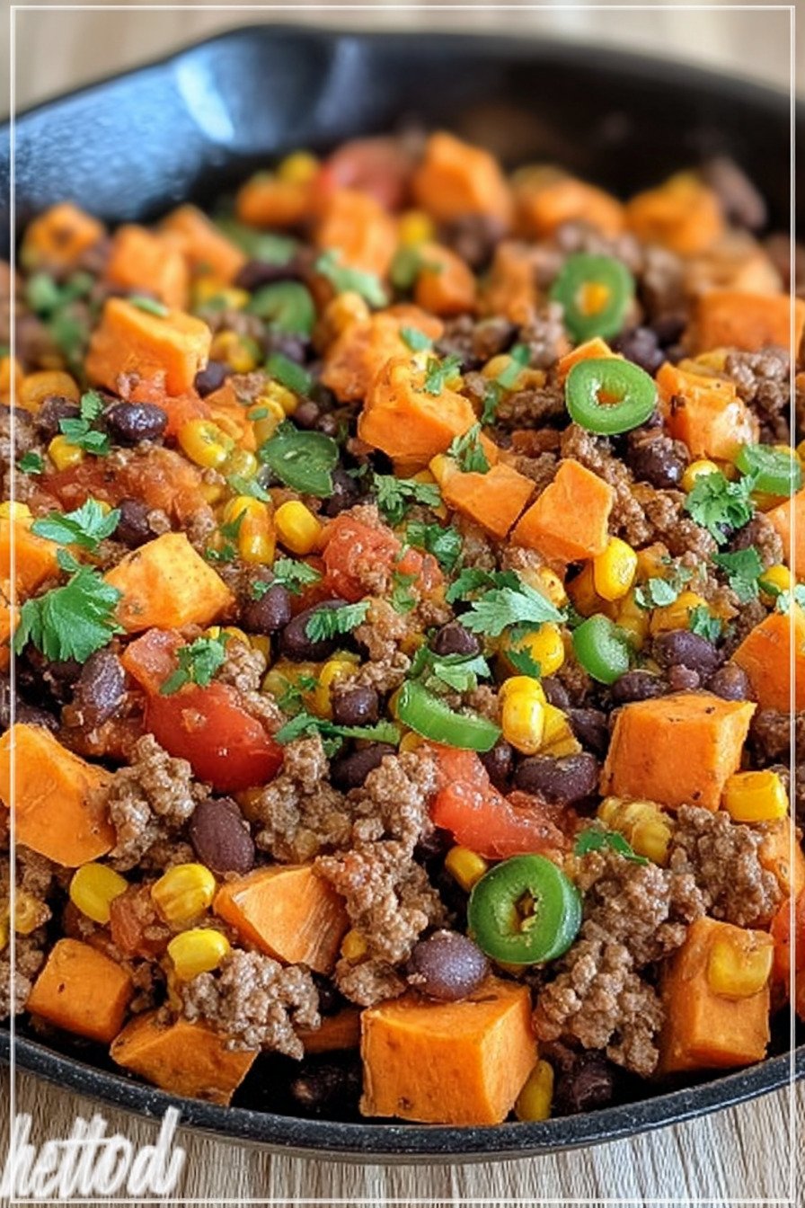 • 2) Easy Southwest Ground Beef Sweet Potato Skillet Recipe