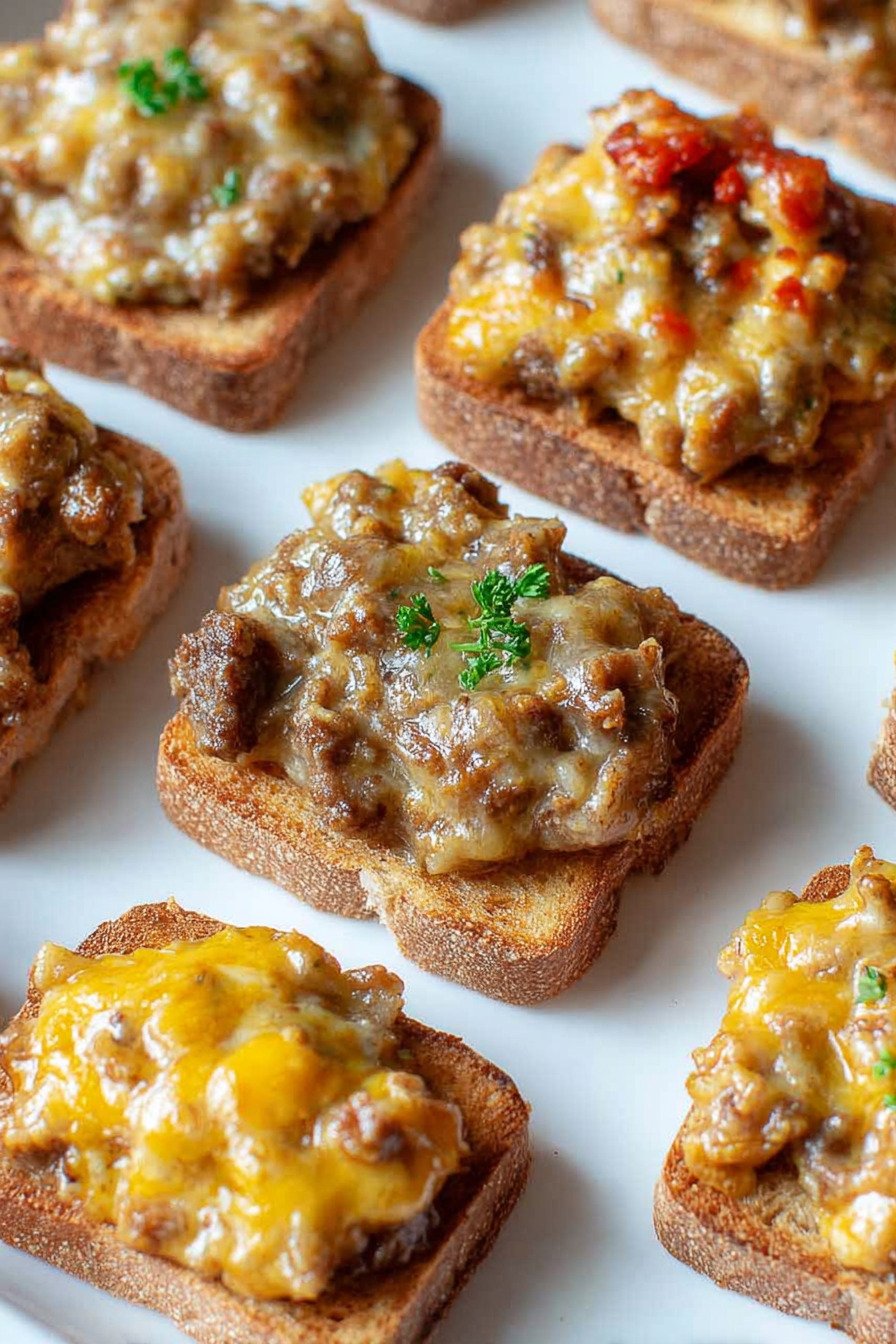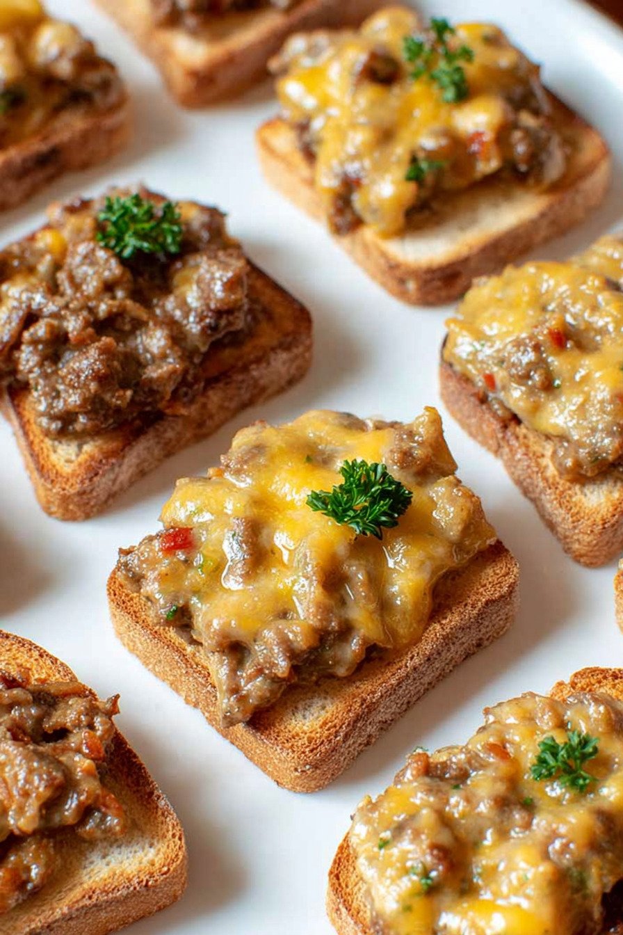 You can also assemble the toasts a few hours ahead and refrigerate them on a tray. Bake them straight from the fridge, adding an extra minute or two if needed. It is an easy way to stay ahead during party prep while still serving one of your favorite Appetizer Recipes warm and melty.
