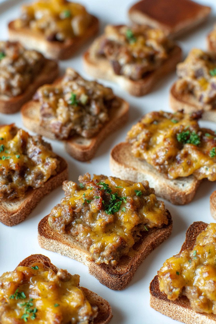 Use sturdy cocktail rye if possible, since it holds the topping better than very soft bread. You can also swap in party pumpernickel if that is easier to find. When serving these alongside a 7 layer dip recipe or even a seafood-inspired Baked Clams Recipe spread, the contrast in textures makes your appetizer table feel extra special.