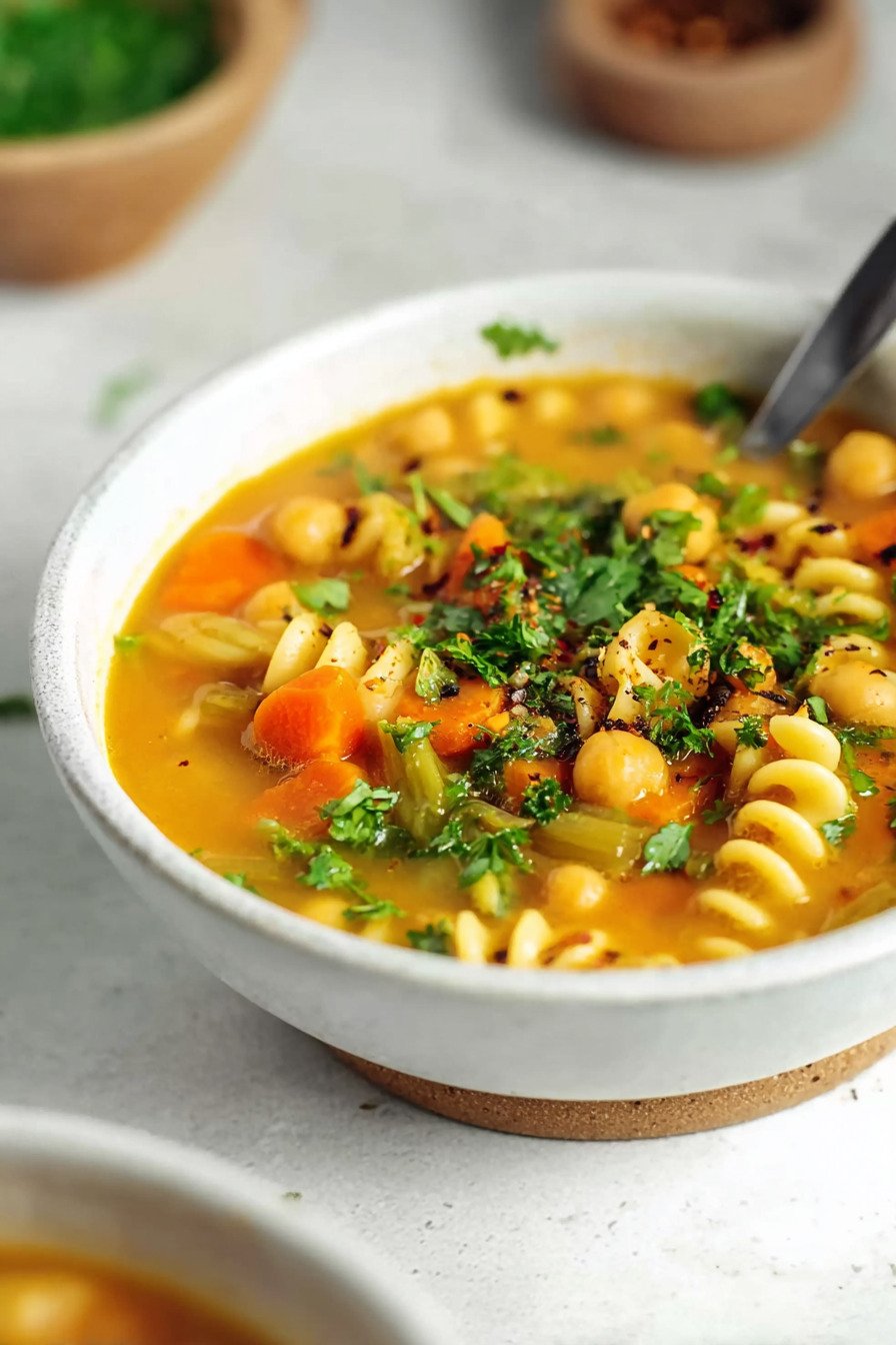 2) Easy Healing Chickpea Noodle Soup Recipe