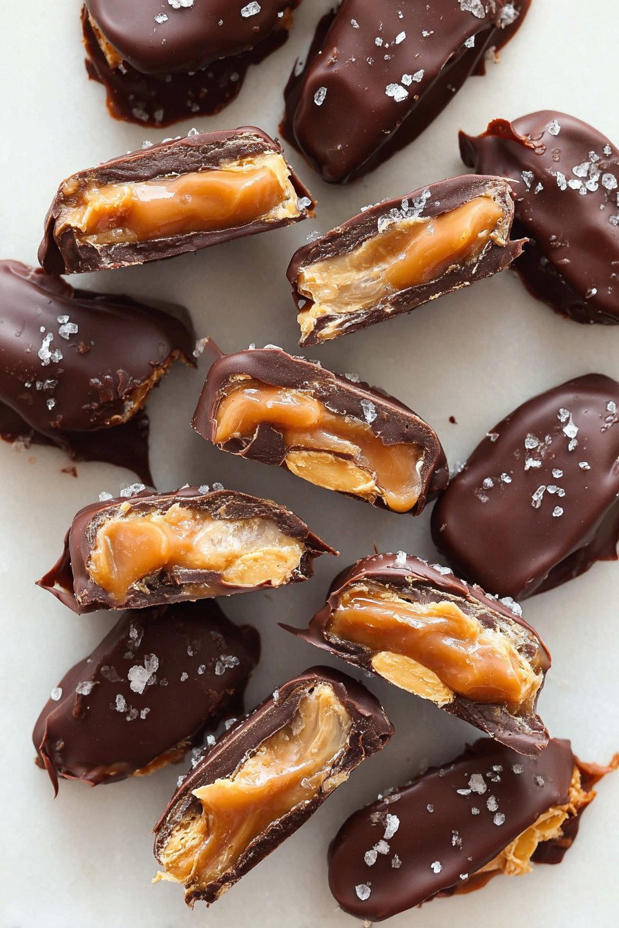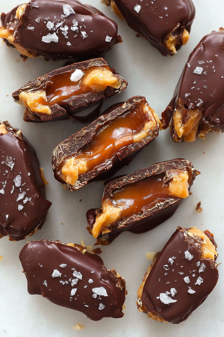 Store leftover Date Snickers in an airtight container in the refrigerator for up to one week. Keeping them chilled helps maintain the firmness of the chocolate and the freshness of the dates.