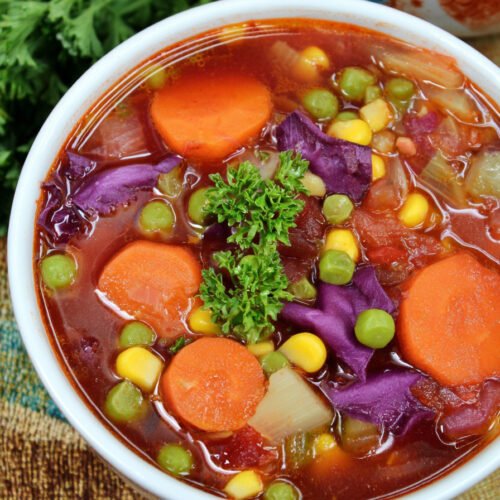 Some days I want comfort in a bowl, but I do not want a heavy dinner that slows me down. That is when I reach for one of my favorite Heart Healthy Soup Recipes and this colorful pot of vegetables always wins. I first made this Weight Watchers Vegetable Soup when I needed easy weight watchers soup recipes that felt cozy and not like diet food. I was tired, the fridge was a bit random, and I just started chopping. Soon the kitchen smelled like garlic, herbs, and slow simmered tomatoes, and I knew I was on to something. Who knew a simple pot of veggies could feel this cozy and still fit into a plan? On Lila Cooks we keep things real, so I will say this soup tastes like a hug from someone who loves you and wants you to feel good. Each bite is warm, a little sweet from corn and carrots, and full of tender cabbage and peas. It is one of those Healthy Vegetable Soup Recipes that saves busy nights again and again. It lives right alongside our other Vegetable Soup Recipes and vegetables soup recipes, and it never lets us down.