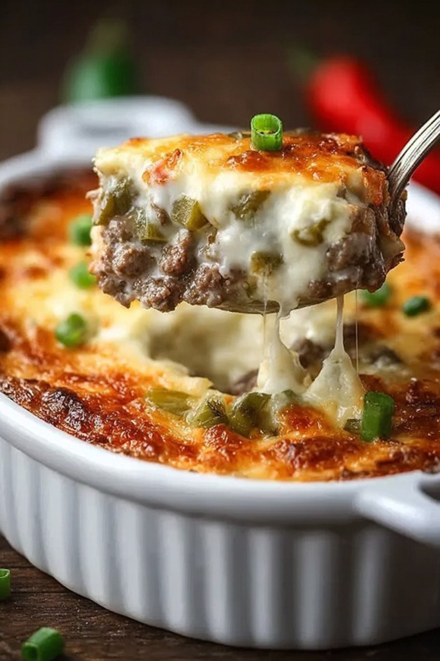I brown beef until it smells deep and rich. I stir peppers and onion until they soften and shine. A quick cream cheese swirl turns silky and clings to every bite. The bake bubbles at the edge and calls us to the table.