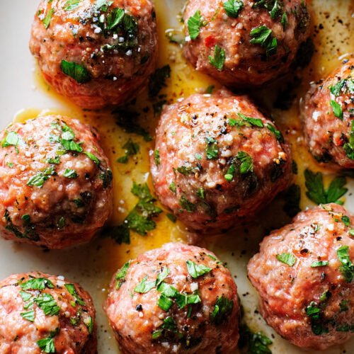 Use gentle hands during mixing. Pressing too hard makes dense meatballs. I mix until the bowl looks even then I stop.