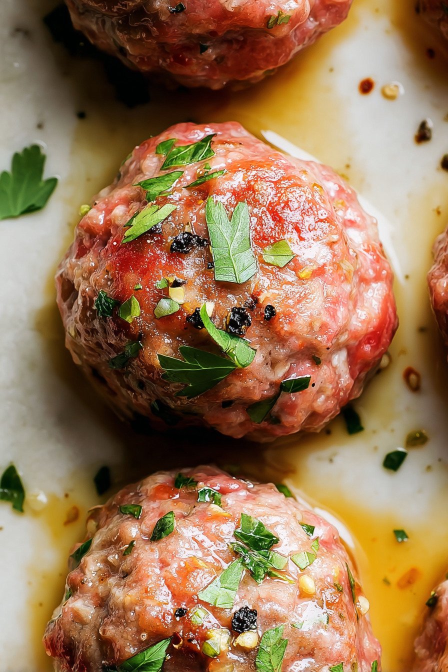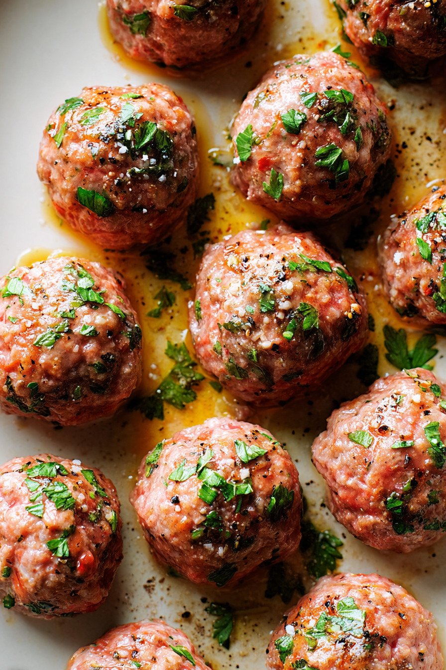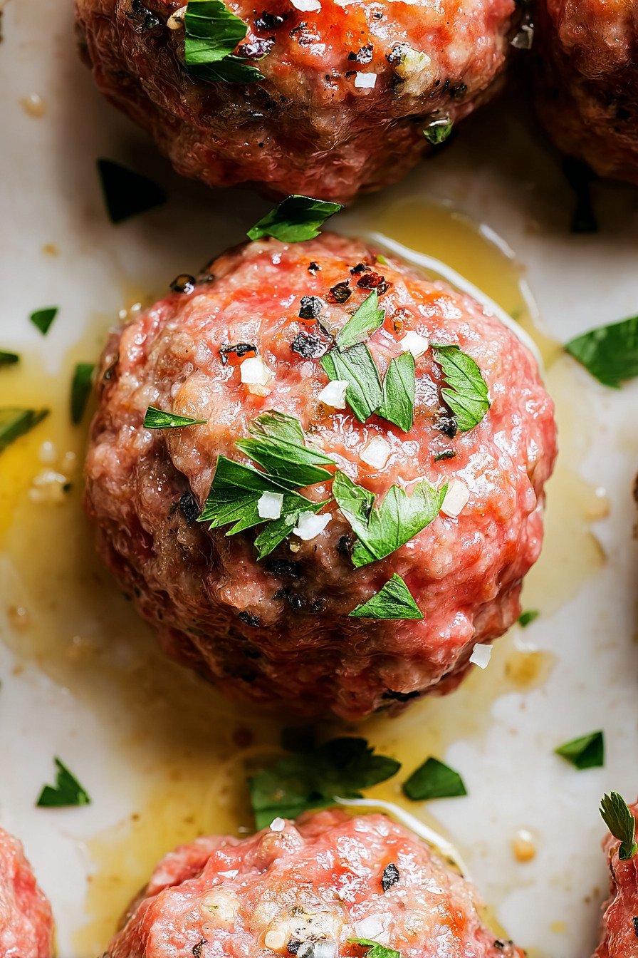 Parsley Fresh parsley gives color and a light herbal note. The green flecks make each meatball look bright and homemade.