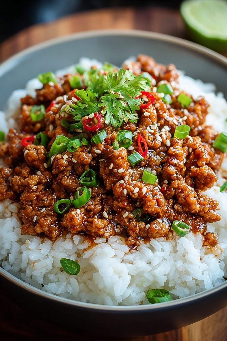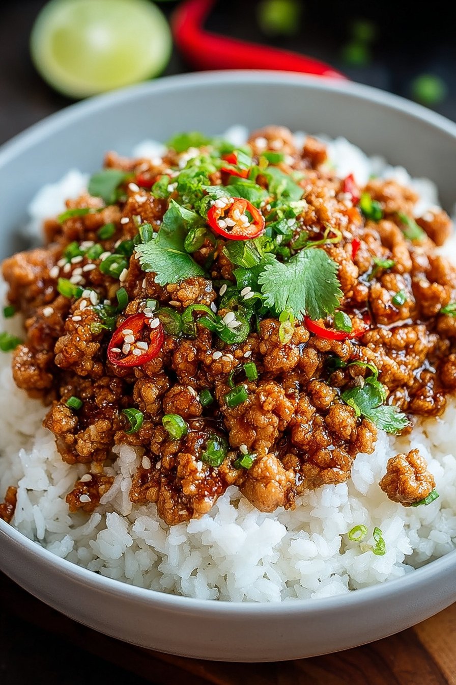 Ground turkey I use lean turkey so the sauce takes the lead and the texture stays light. The meat browns fast and stays tender, which helps the glaze cling and shine.