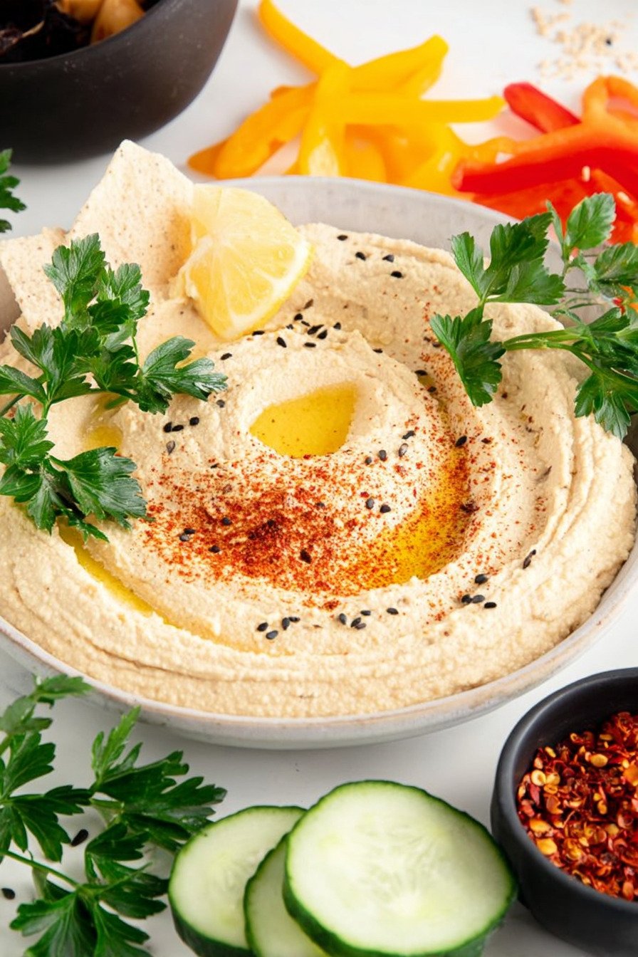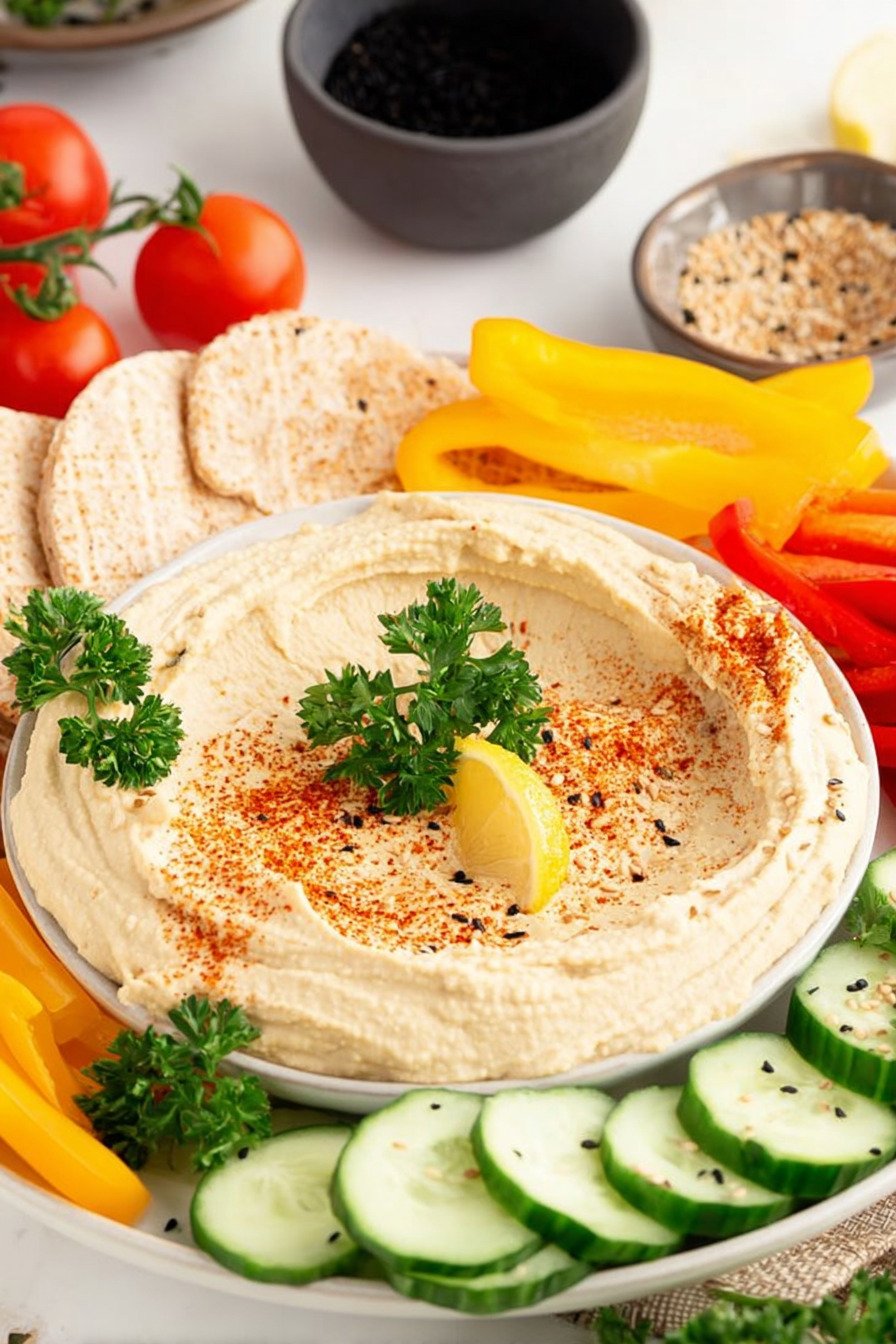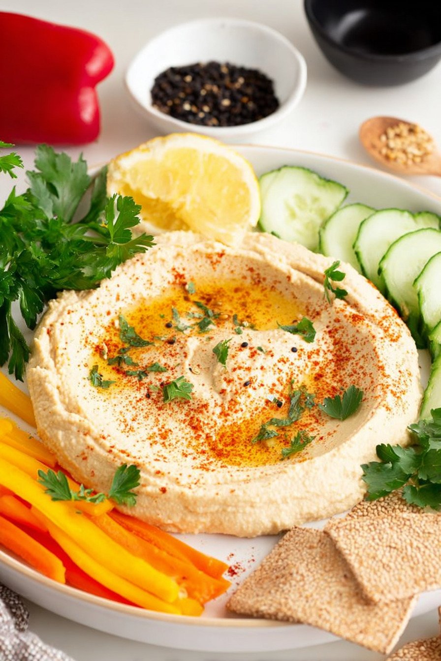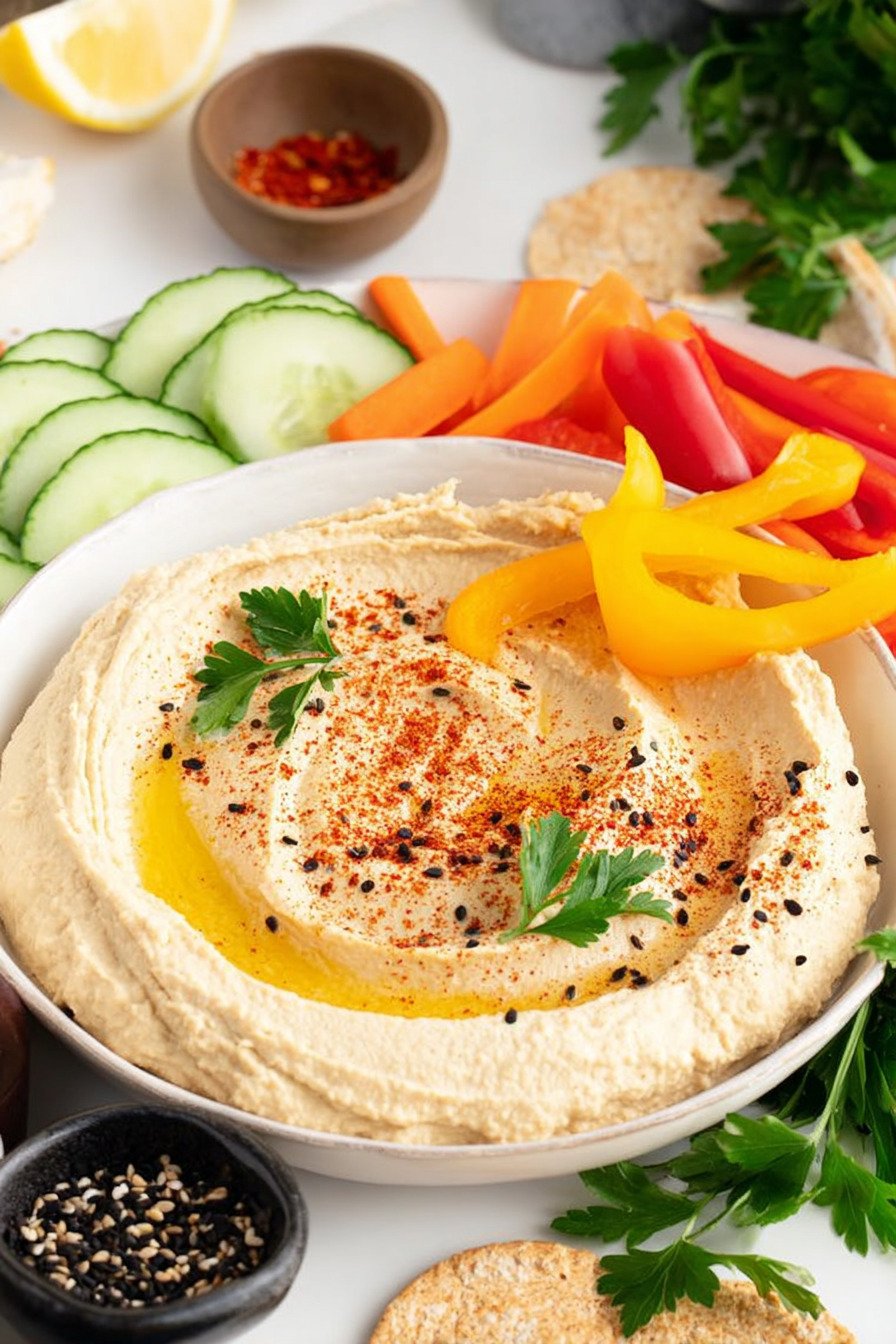 For theme nights lean into a mediterranean hummus recipe path with olives tomatoes and cucumbers. For plant based platters keep it as a vegan hummus recipe and add roasted vegetables. The base stays steady and flexible.