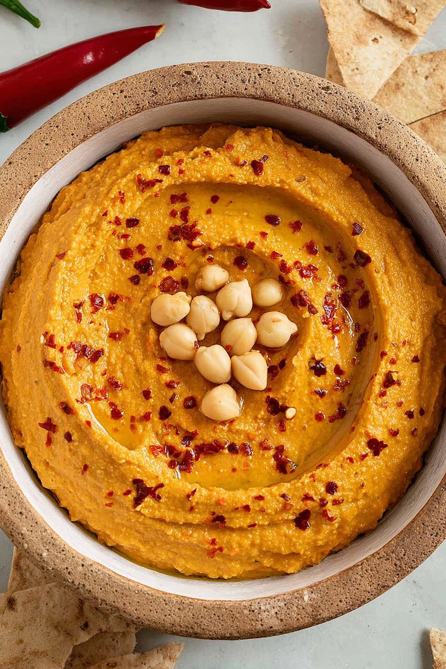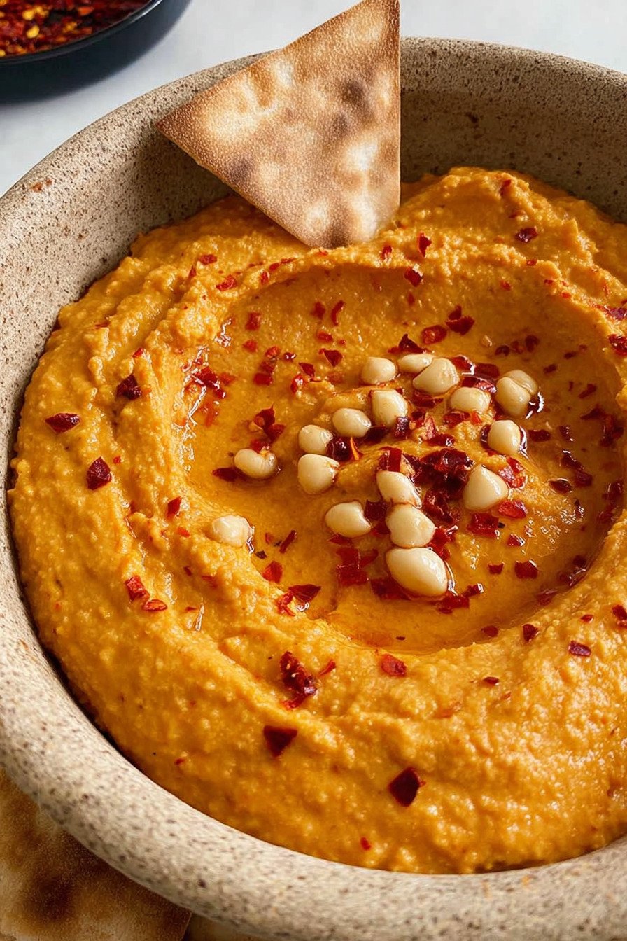 I reach for this hummus recipe when the day feels long and the snack window feels short. I say hummus recipe with a smile since it fixes hungry moods fast and it tastes bright. The peppers bring a gentle sweetness and the tahini adds body and a nut like depth. I roast the peppers until the skins blister and the kitchen smells warm and a little smoky.