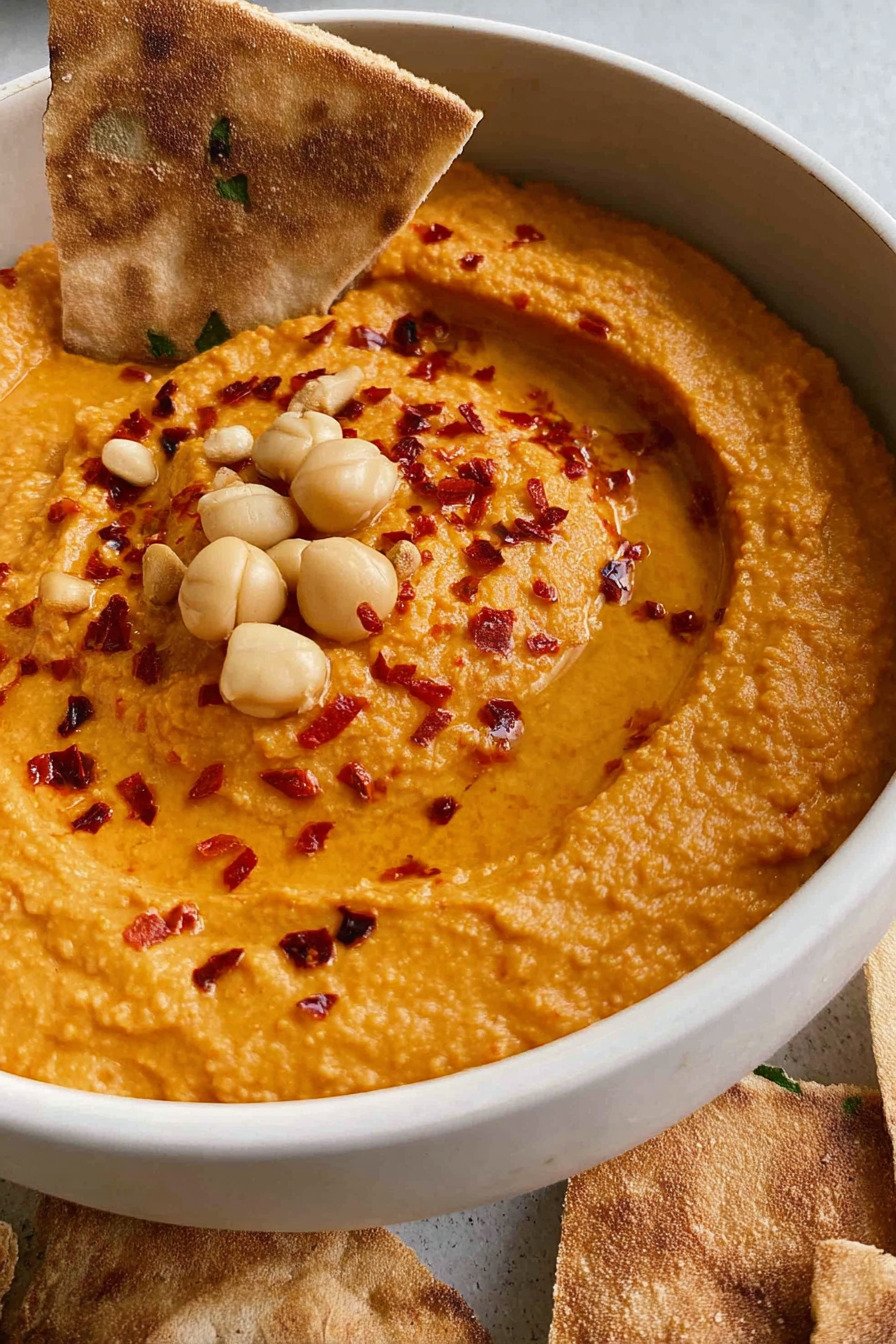 I make this hummus recipe when I want a smooth dip with bright pepper flavor. We roast the peppers until the skins char. We blend the chickpeas with tahini and lemon. The bowl sits on the table and the pita goes fast. Red pepper recipes inspire this version. Roasted red pepper recipes add a gentle sweetness. I keep garlic close and I use it with care. The texture turns soft and creamy. We taste and we nod. This feels like the best hummus recipe for slow afternoons. Friends ask for a roasted garlic hummus recipe and I smile and point to this bowl. It stays plant based so it works as a vegan hummus recipe. Feeling playful I serve carrot sticks and call it a carrot hummus recipe night. Short list. Clean steps. Big reward.