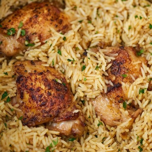 Rice sits under chicken and drinks the broth. Spices cling to the meat and slide into the grains. The texture lands between fluffy and creamy. A squeeze of lemon brightens the bowl. Fresh parsley wakes it up. Kids eat it without a speech. Grownups go back for more.