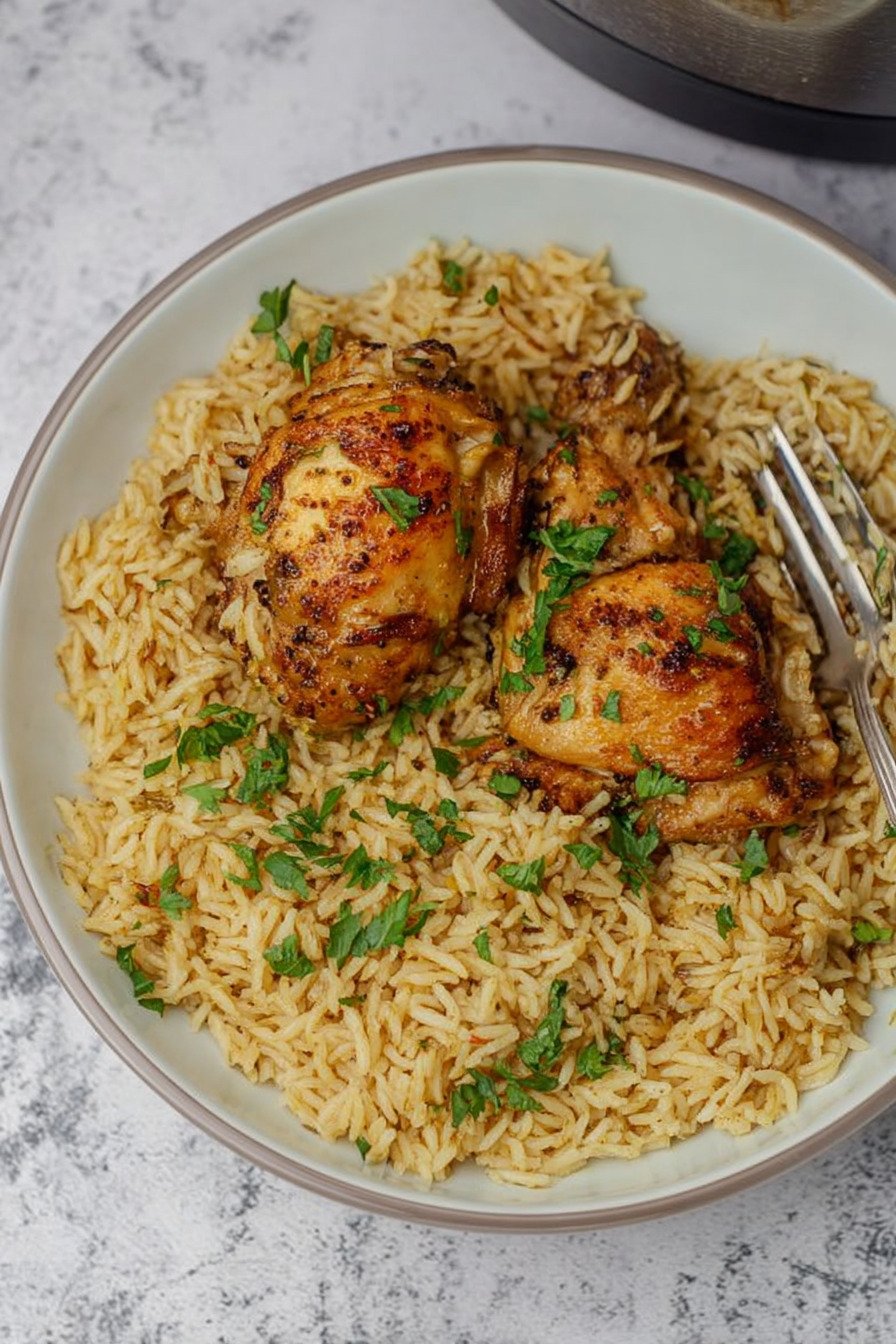 9) Instant Pot Chicken Thighs And Rice