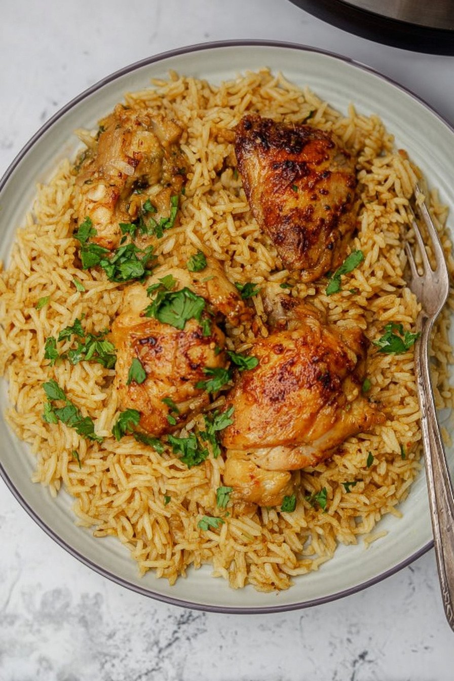 I like dinners that stay calm and still feel special. This dish does that with soft rice and tender chicken. The pot locks in steam and keeps flavors close. You press one button and breathe. For busy nights this feels kind. For tired brains this feels safe.