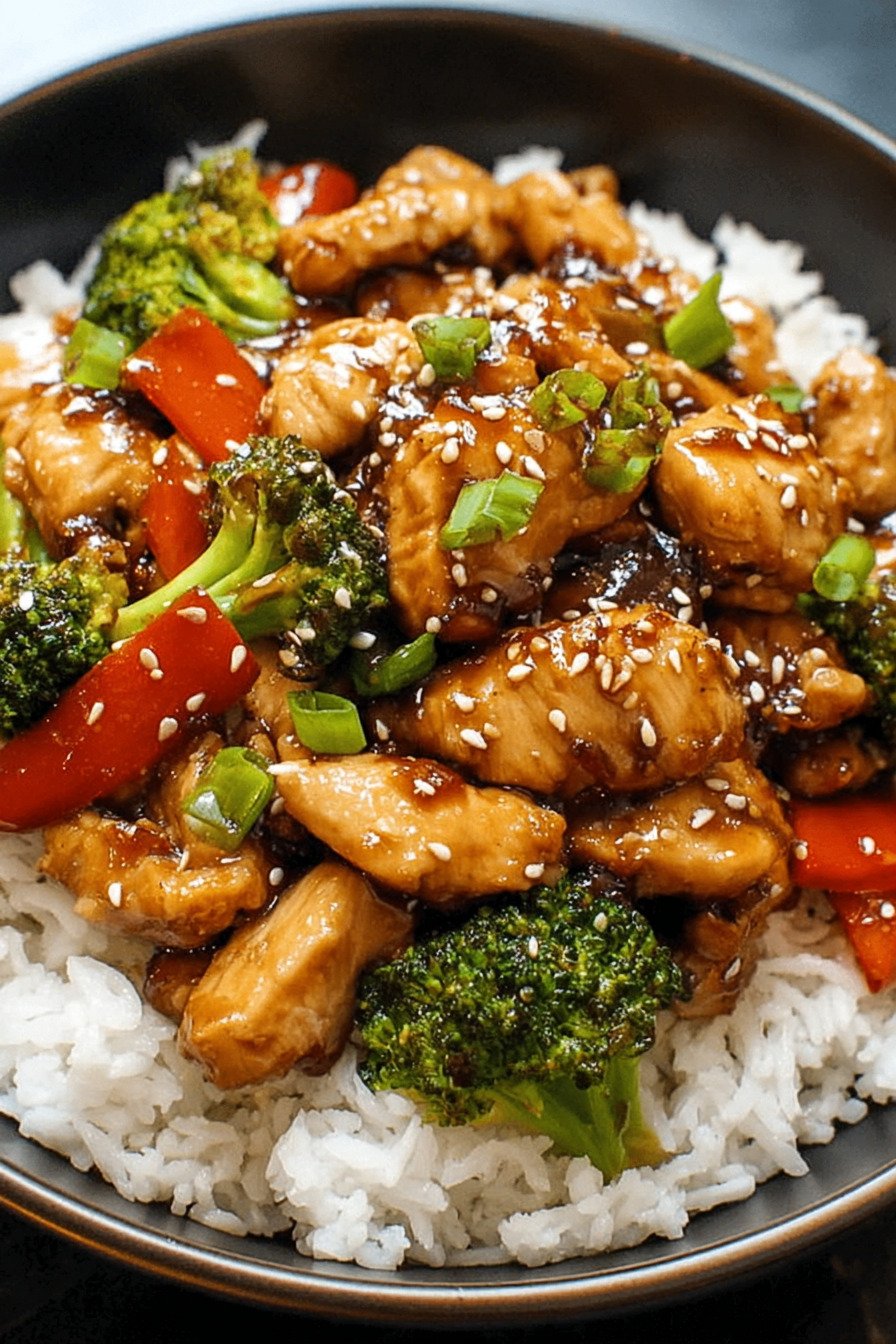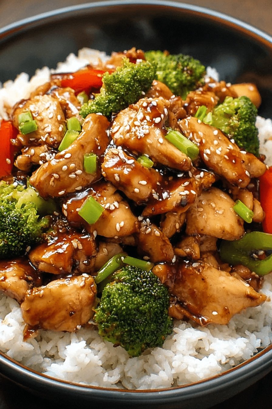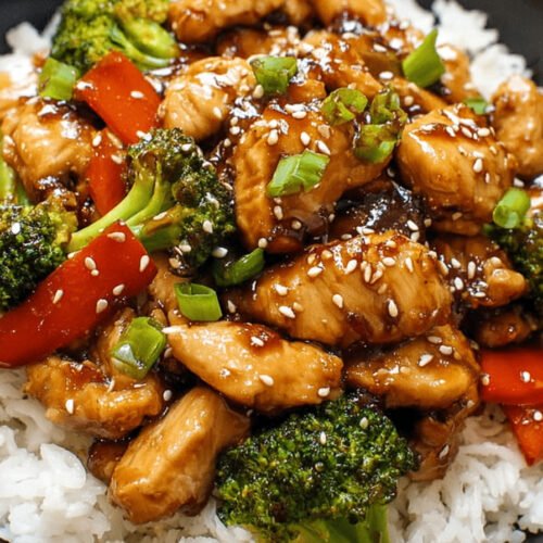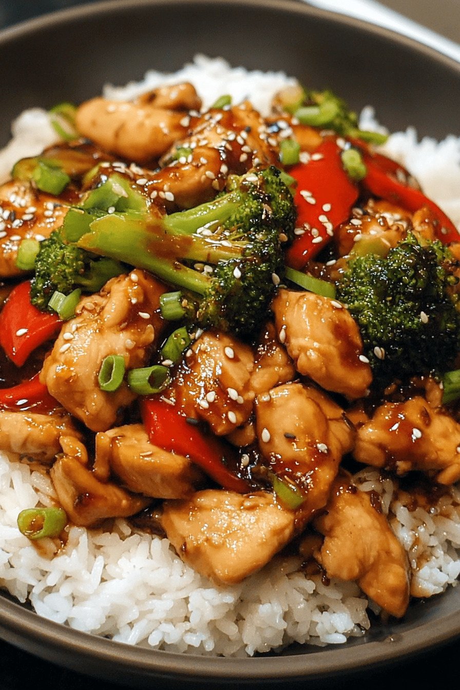 This dish keeps prep short. We slice peppers. We break broccoli into small florets. We grate a touch of ginger. The sauce comes from soy and a little sweet. It thickens fast and hugs every piece.