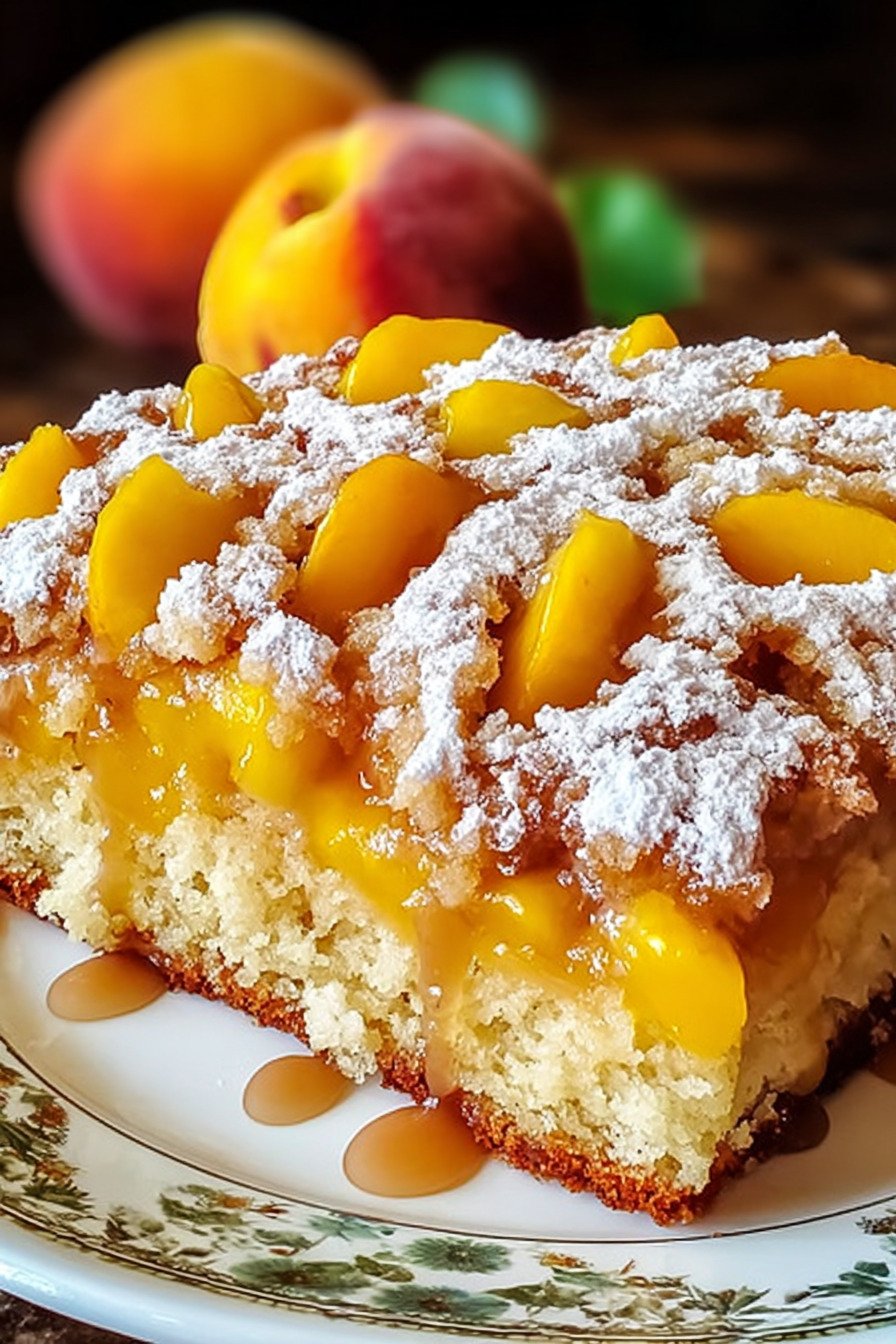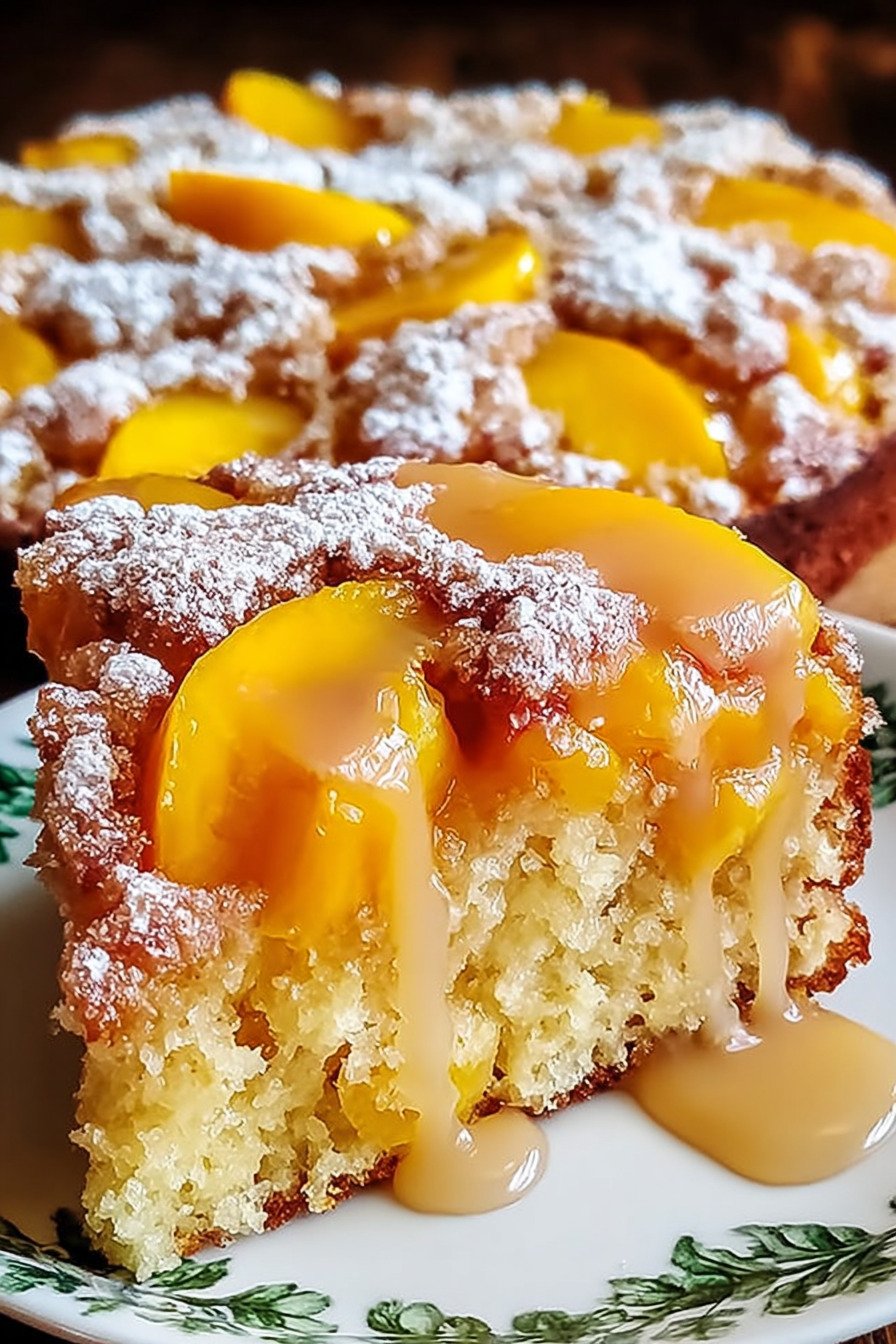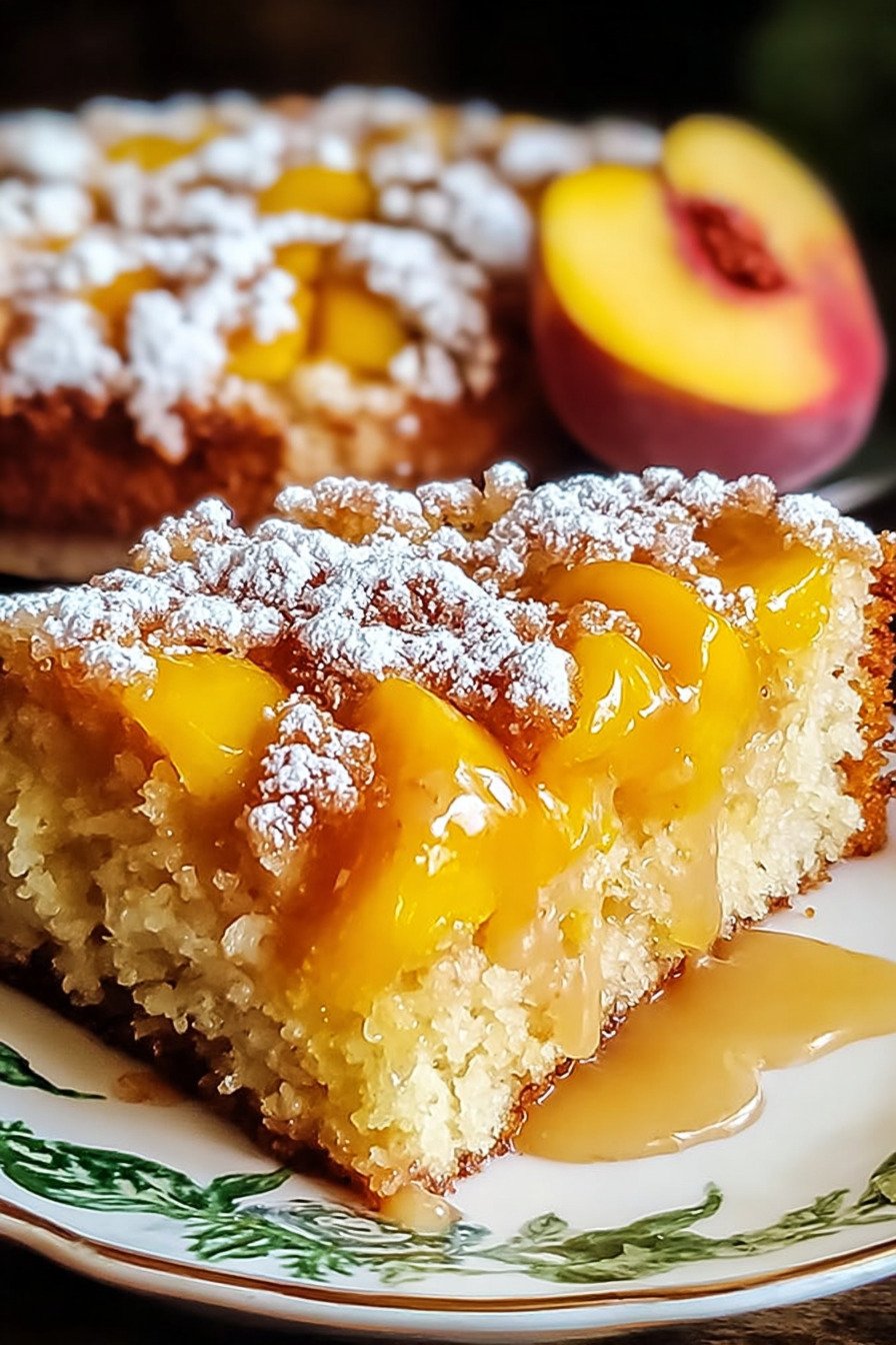 This cake is a great make-ahead dessert because the flavor stays lovely even after it rests. You can bake it a day in advance, let it cool completely, and keep it covered at room temperature if your kitchen is cool, or refrigerate it if needed. In many cases, the peach flavor becomes even more pronounced by the next day.
