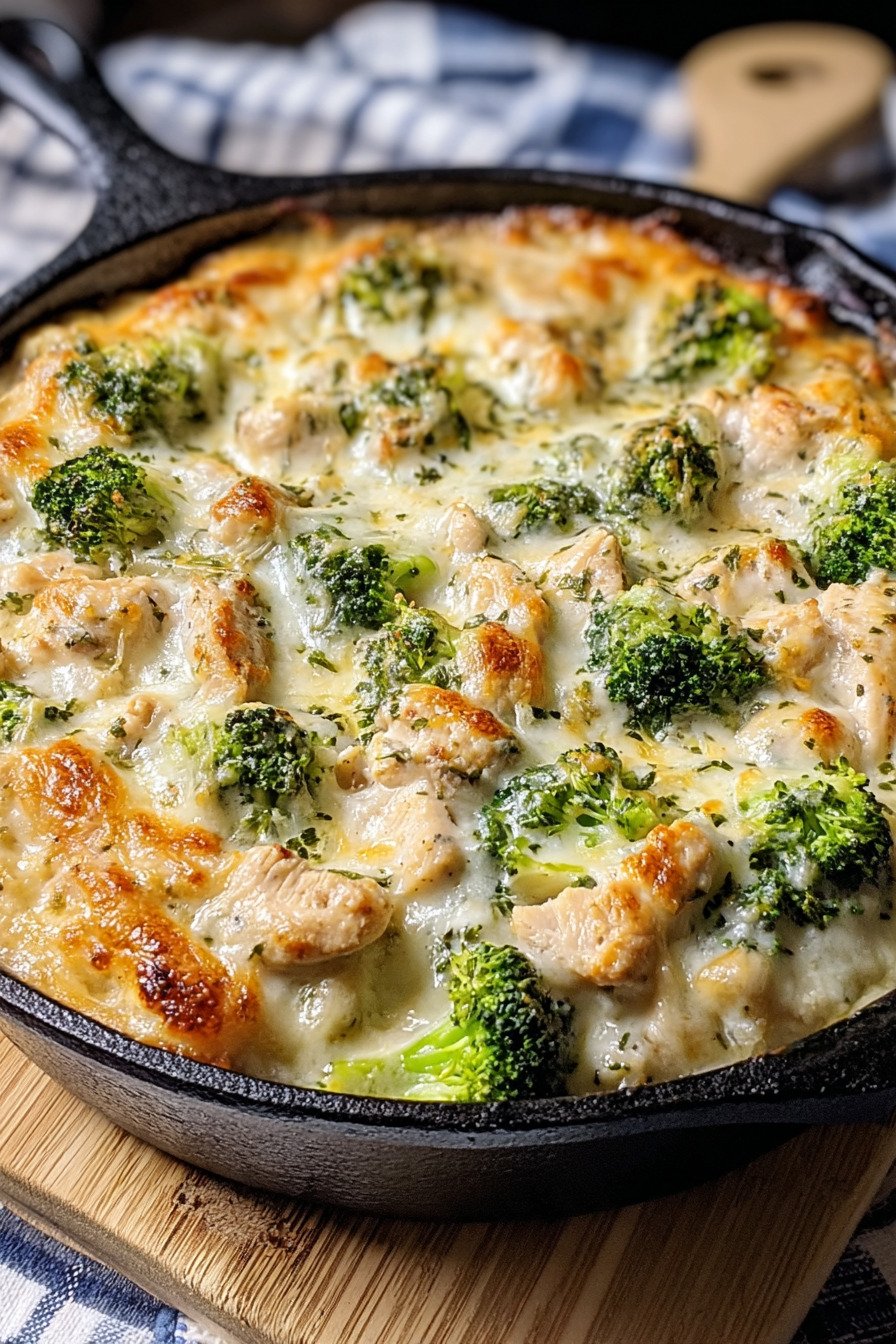 We start with chicken and broccoli. We mix a quick Alfredo. We bake till the top turns gold. We rest the dish and serve. The sauce clings to each bite. The texture stays creamy. The flavor leans garlicky and cheesy. Kids cheer. Grown ups nod. Plates come back clean.