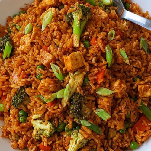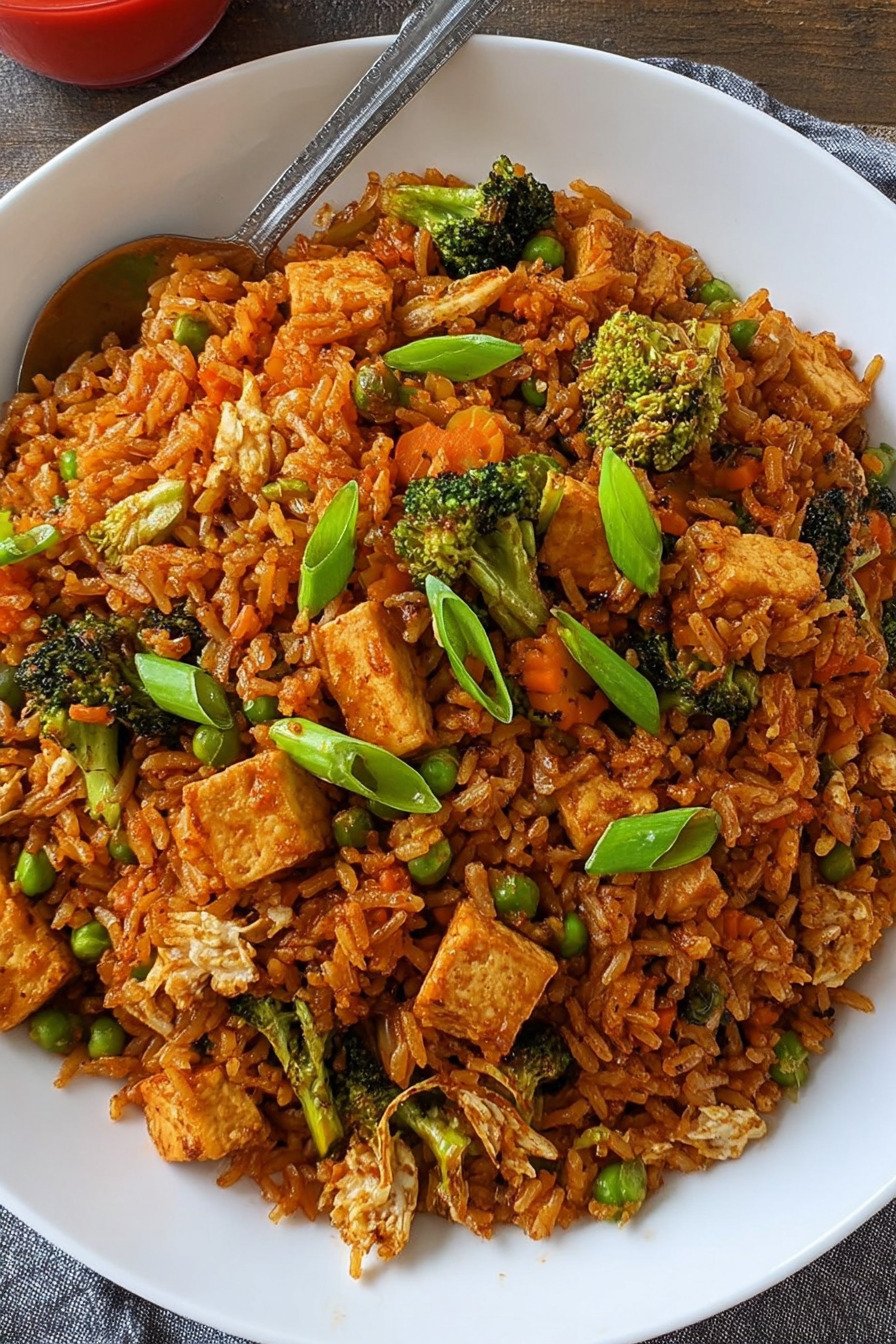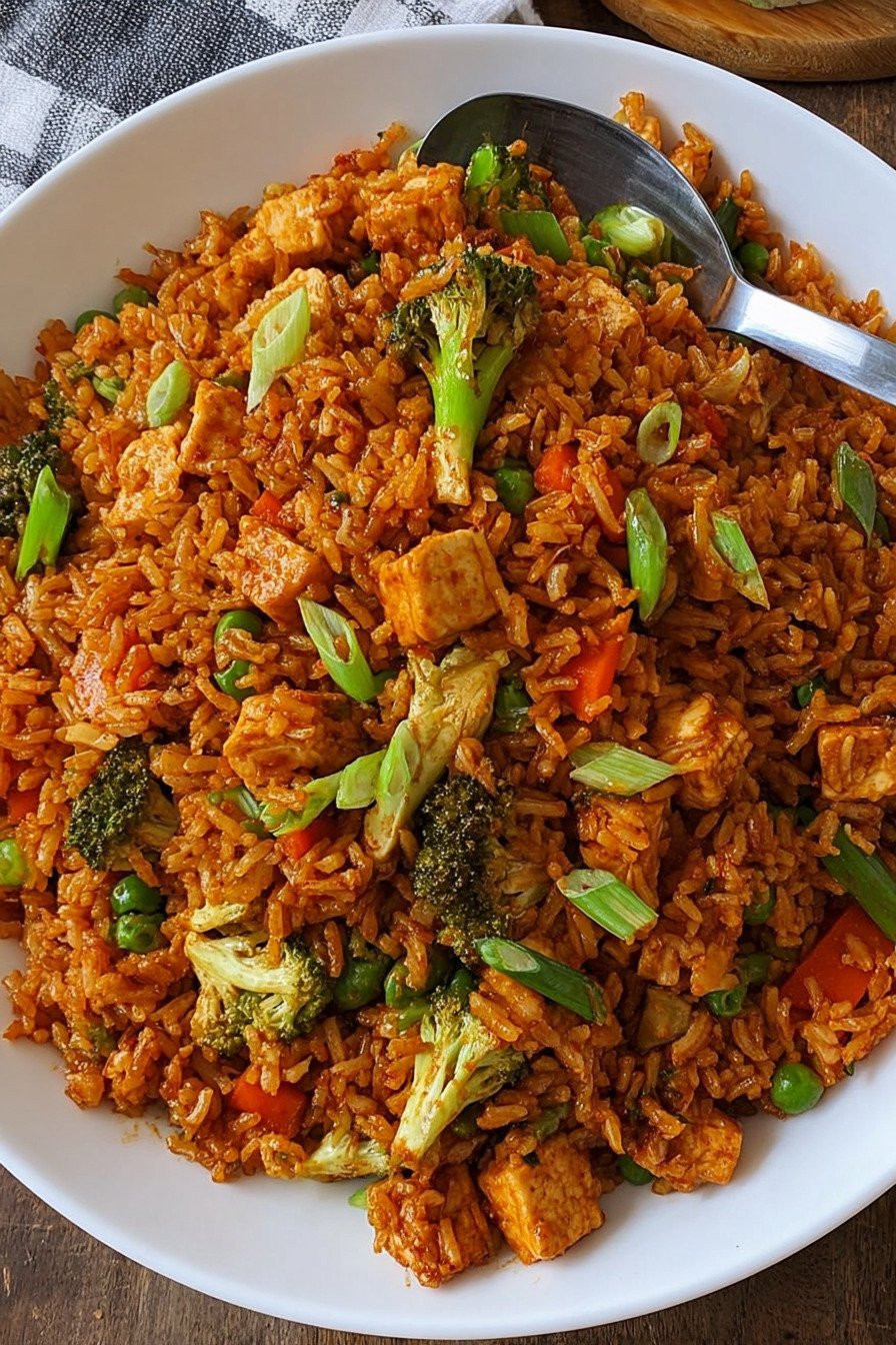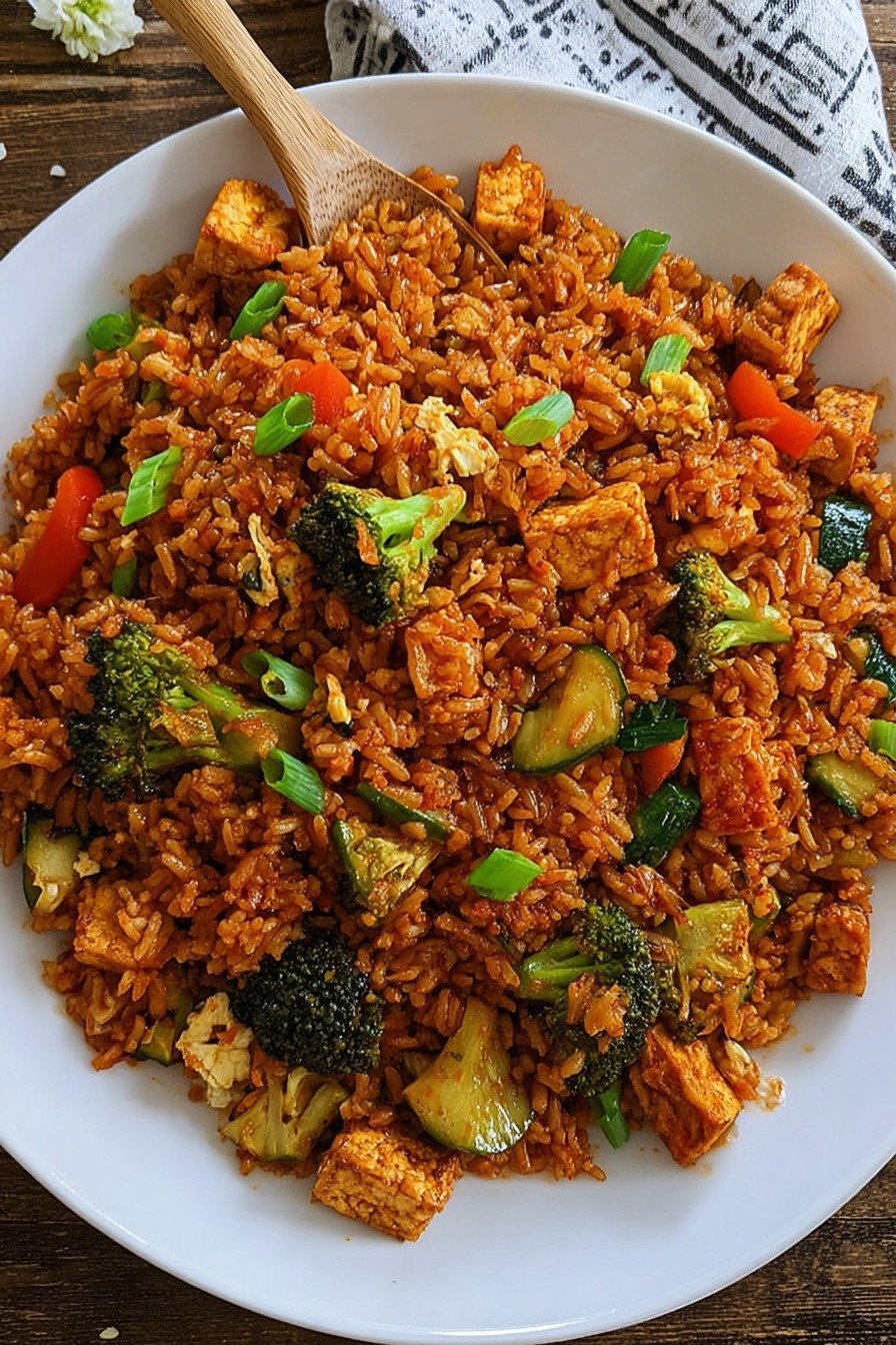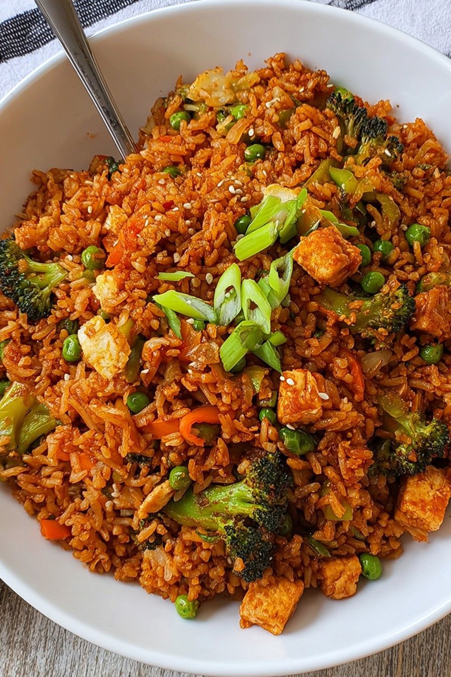 I cook this bowl when I want big flavor without fuss. The rice tastes toasty, the tofu turns crisp at the edges, and the gochujang gives a deep warm kick. It sits in that sweet spot where comfort meets a little fire, and we get dinner that feels bright and bold. This is my love letter to korean vegetarian recipes. It borrows ideas from the pantry and keeps the move fast. It reads like a fried rice recipe easy vegetarian, yet it eats like takeout on a good day. We start with cold rice, a hot pan, and a spoon of paste that wakes everything up. Vegetarian Fried Rice gets a cozy twist, the sauce clings, and every bite pops with sesame and scallion. I reach for it when I want vegetarian rice recipes that still feel playful. Vegan Fried Rice fans will find the same snap and crunch. Rice recipes vegetarian should not feel plain, so I lean on ginger, garlic, and that mellow heat. For friends who crave vegetarian korean recipes, this checks all the boxes and brings us back for seconds.