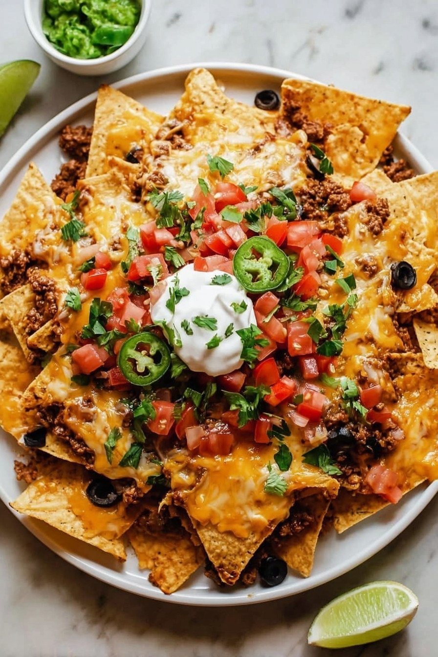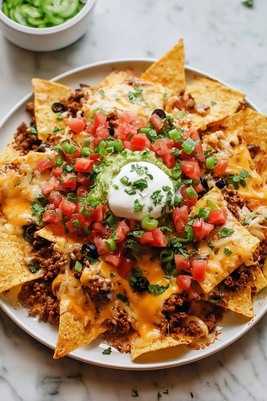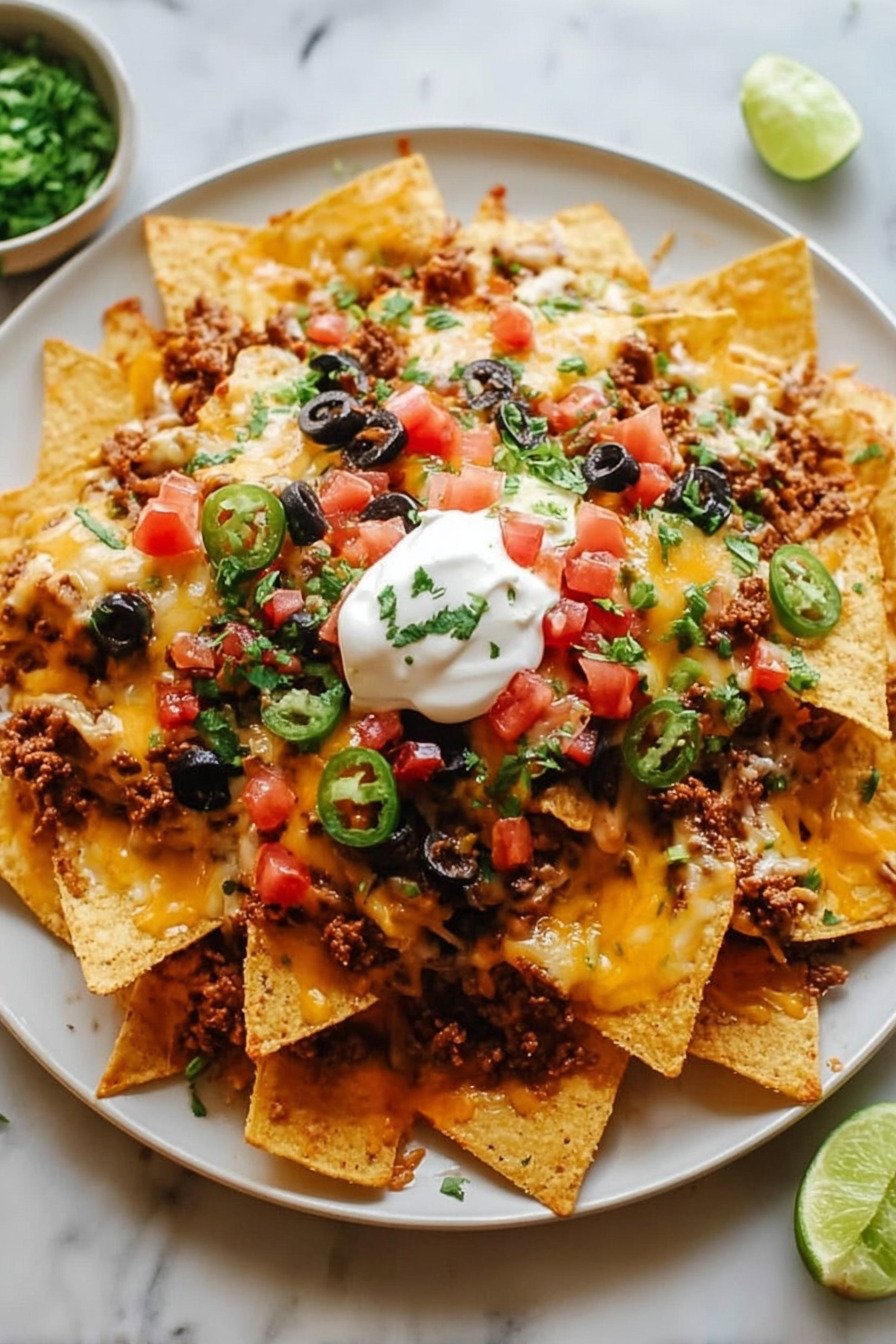 If you’re looking for the ultimate nachos recipe that’s packed with bold flavors and irresistible textures, these Loaded Cheesy Beef Nachos are exactly what you need. This crowd-pleasing dish combines crispy tortilla chips with a savory beef nachos recipe twist, making it perfect for game nights, parties, or a quick family dinner. This ground beef nachos recipe is layered with seasoned meat, melty cheese, and fresh toppings to create the perfect loaded nachos recipe beef lovers crave. Whether you prefer a classic cheesy nachos recipe or want to experiment with variations like a nachos recipe vegetarian style or even a healthy nachos recipe, this dish is incredibly versatile. Best of all, this nachos recipe is easy to customize and quick to prepare, making it ideal for busy days. From indulgent cheesy layers to lighter ingredient swaps, you can adapt this beef nachos recipe to suit any preference while still delivering maximum flavor in every bite.