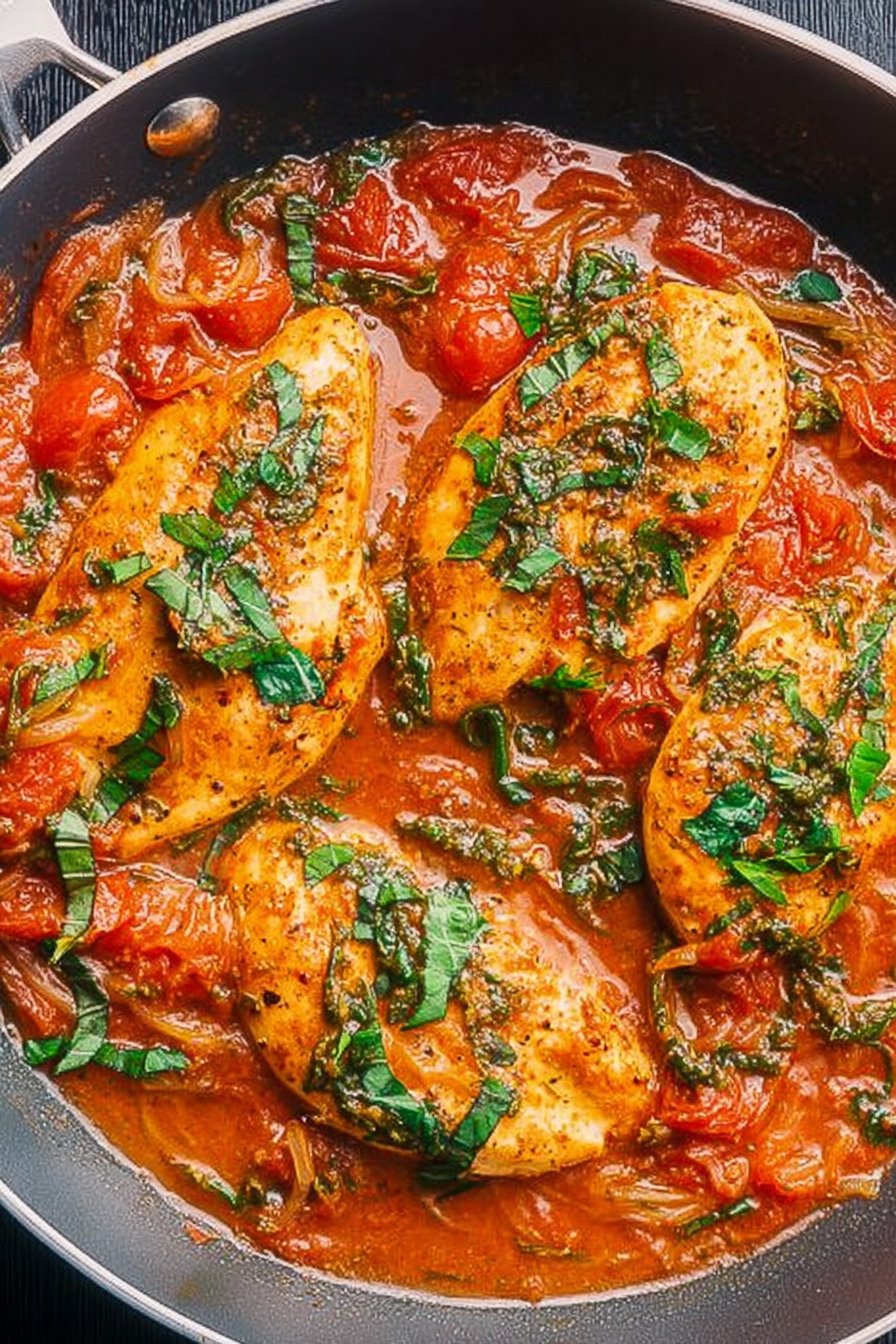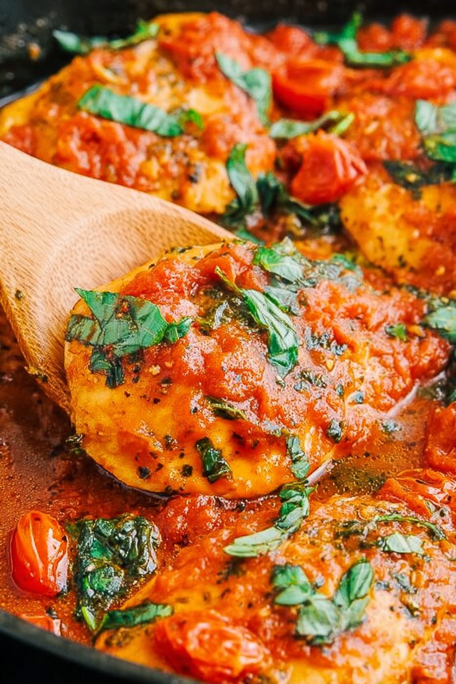 If your tomatoes are especially juicy, let the sauce simmer a few extra minutes before returning the chicken to the pan. That little bit of reduction concentrates the flavor and gives you a richer finish. If you are used to Baked Chicken Breast Recipes, think of this skillet method as a faster route to that same tender result with even more sauce.