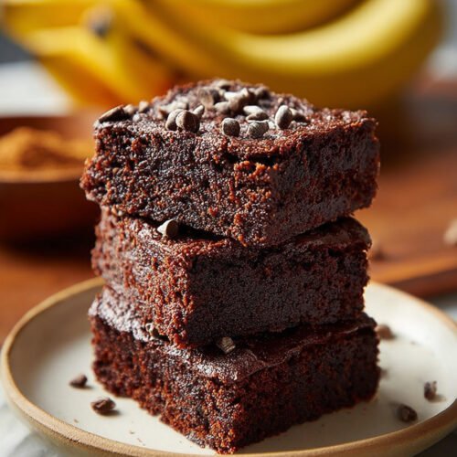 When baking, don’t rush. Give the bananas time to mash smoothly and the batter time to come together. If you want denser brownies, bake them a bit less. For a more cake-like version, give them a few extra minutes. I like to sprinkle a few chocolate chips on top before baking—it makes them look fancy without effort. Keep your ingredients at room temperature. Cold eggs can make coconut oil seize, and no one wants little clumps of oil in their brownies.